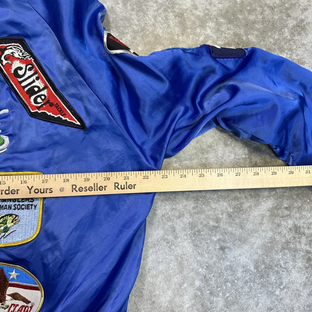 Vintage sportsman Bass fishing satin jacket all over patches 80s blue size M / L Please check the measurements in the photos in order to gurantee correct fit of the clothing item! the measurements tend to be located at the end of the set of photos! thanks! Our customers are always our first priority here at MJTvintage! if you ever have any concerns please contact us we typically respond very promptly! if there is for any reason your not happy with a purchase don't leave a bad review just contact us and we will be happy to accomodate any issues you had, we believe in going the extra mile for our customers!! lastly, you are always the top priority as the customer and we thank you for your support! Contact us We can be contacted at any time through eBay messages if you have any questions, comments or product requests. We will respond to you within 24 hours and do our best to help you out! We encourage our customers to contact us with any questions or concerns! We'd like to be sure you are completely satisfied with your purchase. Returns For our Buyers Convienience we offer free returns! we do though stringly discourage returns for the item not fitting as we include detailed measurements in our listings so please try to be respectful of that, thanks! Shipping All packages are shipped next day 100% of the time except if purchased on the weekend they go out on monday morning! we pride ourselves on our fast shipping and hold true to it always! Disclaimer most of the items we sell are vintage (20 years & older), therefore some of them might have minor flaws that are caught in the pictures but we try our hardest to describe and picture any flaws! Free eBay listing template designed by © dewiso.com .
