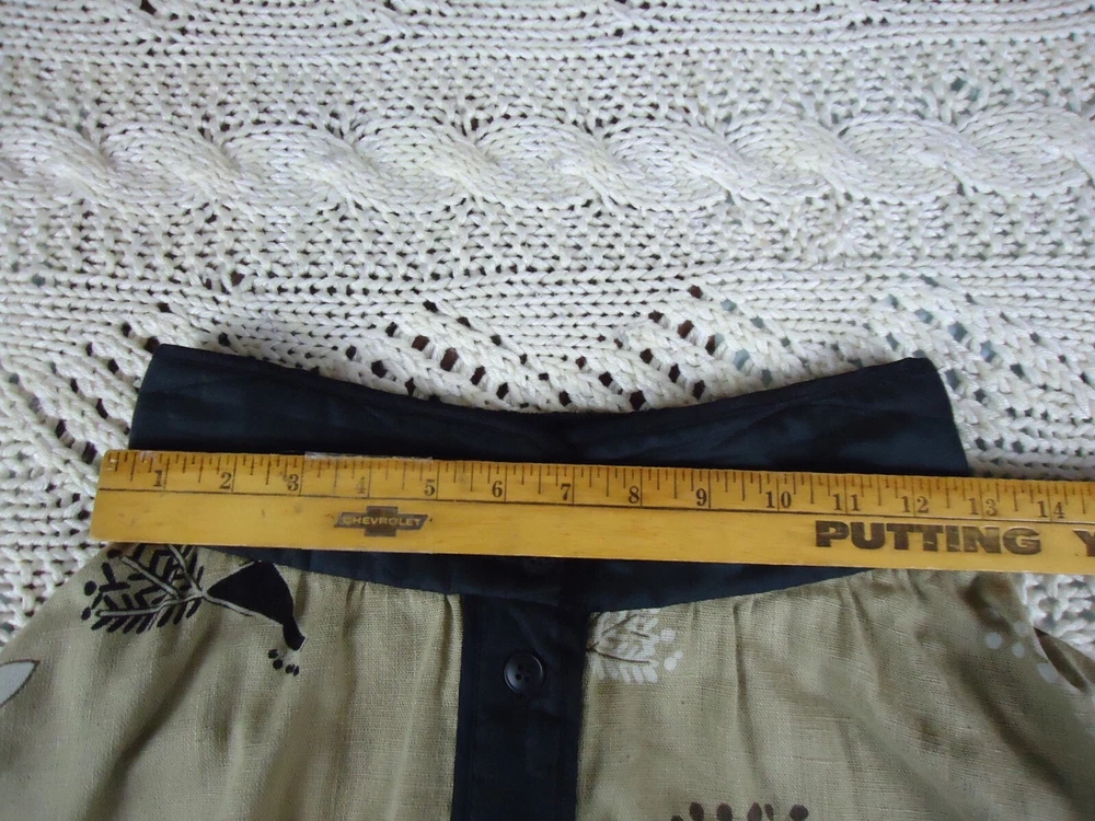 1. Absolutely love this unique vintage piece! The flared silhouette is so flattering, and the bold peacock and lama print is a total conversation starter. Despite being pre-owned, it’s in fantastic shape—just a few minor signs of wear that add to its charm. Perfect for anyone who loves statement boho style!