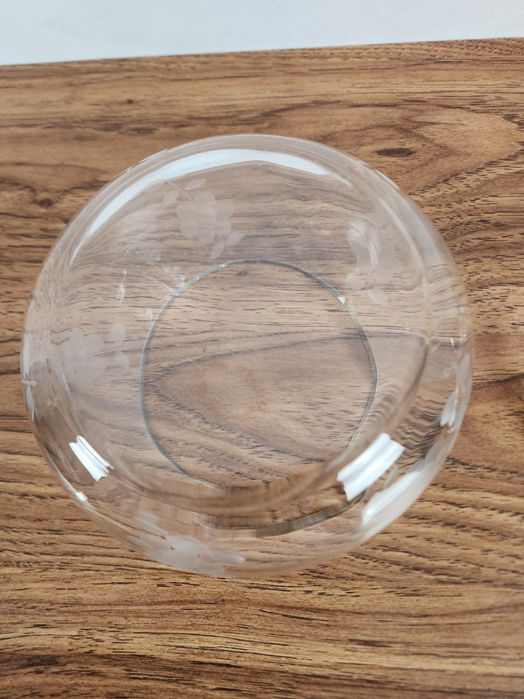This piece is absolutely stunning! The clear-cut glass is etched with flower details that add a touch of elegance. The dish comes with a lid and is perfect for displaying cookies or other treats. It is made of high-quality glass, and aside from a small chip in the mouth of the piece, it has been well-preserved over the years. The piece measures approximately 7 inches from the base to the tip of the lid. It measures approximately 6 inches at it widest. The opening measures approximately 4.5 inches in diameter. At Makenna Cole Collection, we very much appreciate your purchase and your feedback. Our collection is a wide variety of items, and our passion is to find good homes for our great finds. From old to new, gently used to never used, our collection has a little bit of everything! Box 33-225