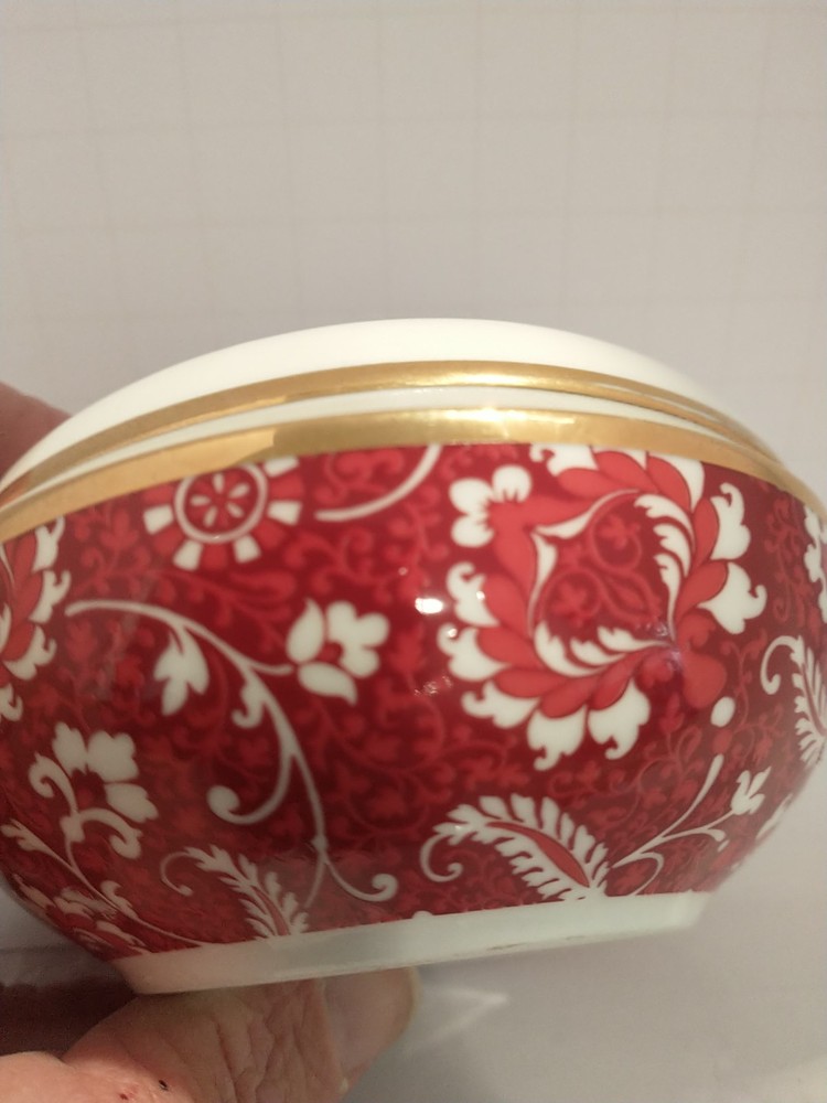 Color: White Modified Item: No Packaging: Unboxed Brand: Fringe Studio California Prop 65 Warning: no apply Finish: Gold Era: Late 20th Century (1970-1999) Original/Reproduction: Original Room: Any Room Theme: Seasonal Item Length: 4 in Country/Region of Manufacture: China Department: Adults Size: Small Subject: Boxing Material: Porcelain Engraved: No Occasion: All Occasions Pattern: Floral Handmade: No Type: Trinket Box Features: Boxed Care Instructions: Clean with Damp Cloth Time Period Manufactured: 2010-2019 Customized: No Shape: Round