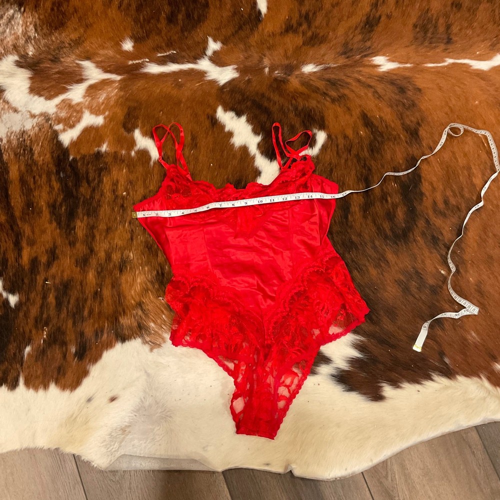 Vintage Floral Lace V-Neck Faris Bodysuit High Cut Size M Red Description: Condition: Very Good Condition Brand: Vintage Size: M Color: Red High Cut V-Neckline Floral Lace