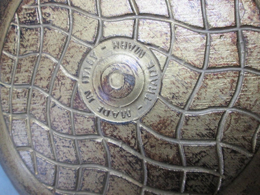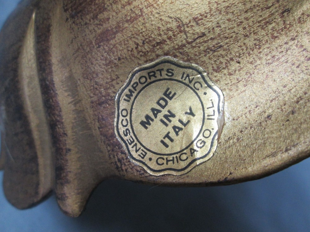 This is a vintage plastic Florentine style handled serving bowl made in Italy for Enesco Imports. It is in excellent condition. No damage. It is approx. 9 3/8in. across and signed with a label. GREAT item to add to your collection, decor or existing set. Thanks for looking.