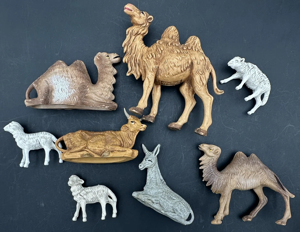 Lot includes all animals shown. Tallest standing camel measures approximately 4 inches tall and 4 3/8 inches long. White sheep measure 2 inches tall. All figures are marked ITALY, but marks are different on some pieces. Surface wear as seen in pictures. Does not include any original packaging. Thanks for looking and happy buying! Follow this link to see all our NATIVITY items! Follow this link to see all our RELIGION & SPIRITUALITY items! Follow this link to see all our CHRISTMAS items!