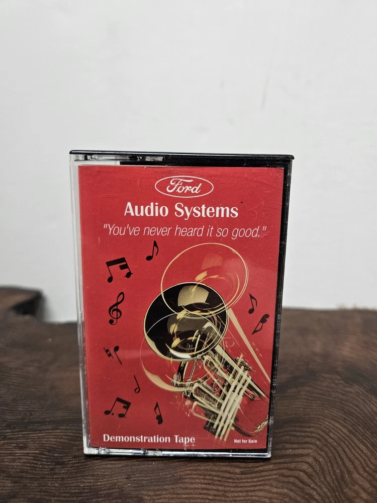 Delve into the world of vintage audio with the Ford Audio Systems Demonstration Cassette Tape, a unique find for enthusiasts and collectors alike. This cassette, housed in its original case, offers a glimpse into the audio capabilities of Ford's systems, featuring a selection of tracks that showcase the quality and range of their car stereos. Crafted in the United States, this item is not just a piece of media but a snippet of automotive history, with the red cassette showcasing the Ford brand's commitment to high-fidelity sound. It's an excellent addition to any collection of music memorabilia or for those who appreciate the tactile and auditory experiences of a bygone era.