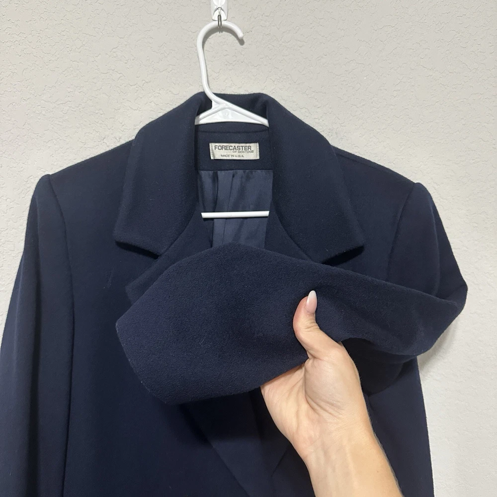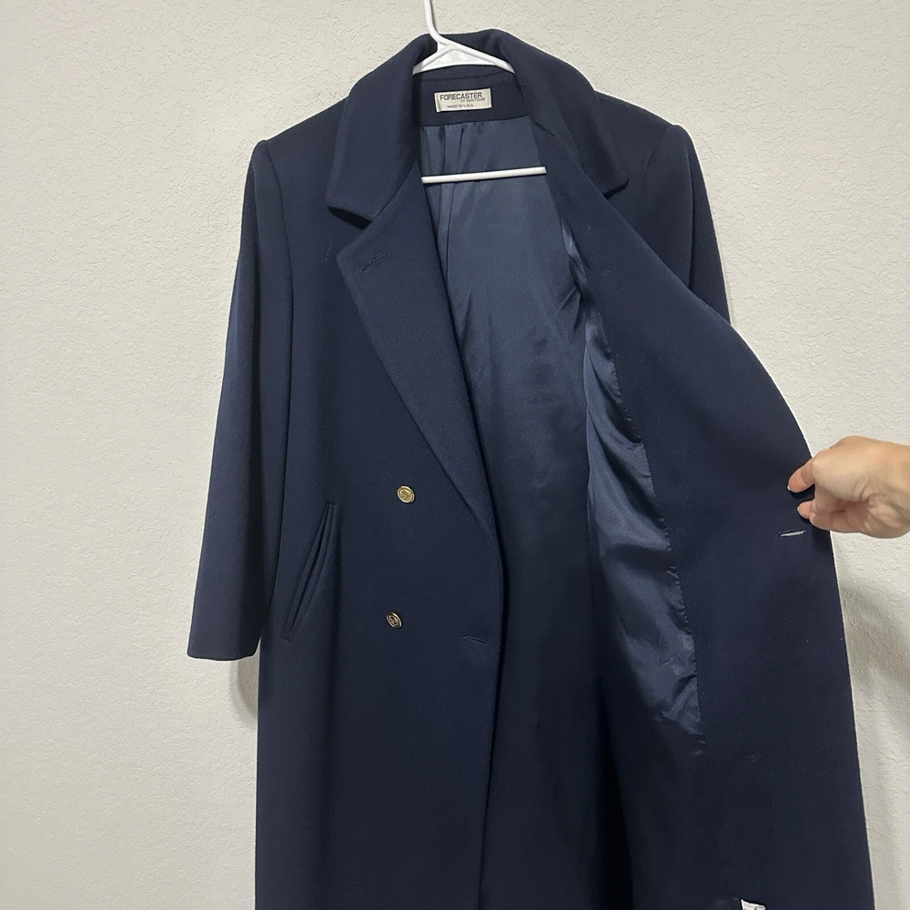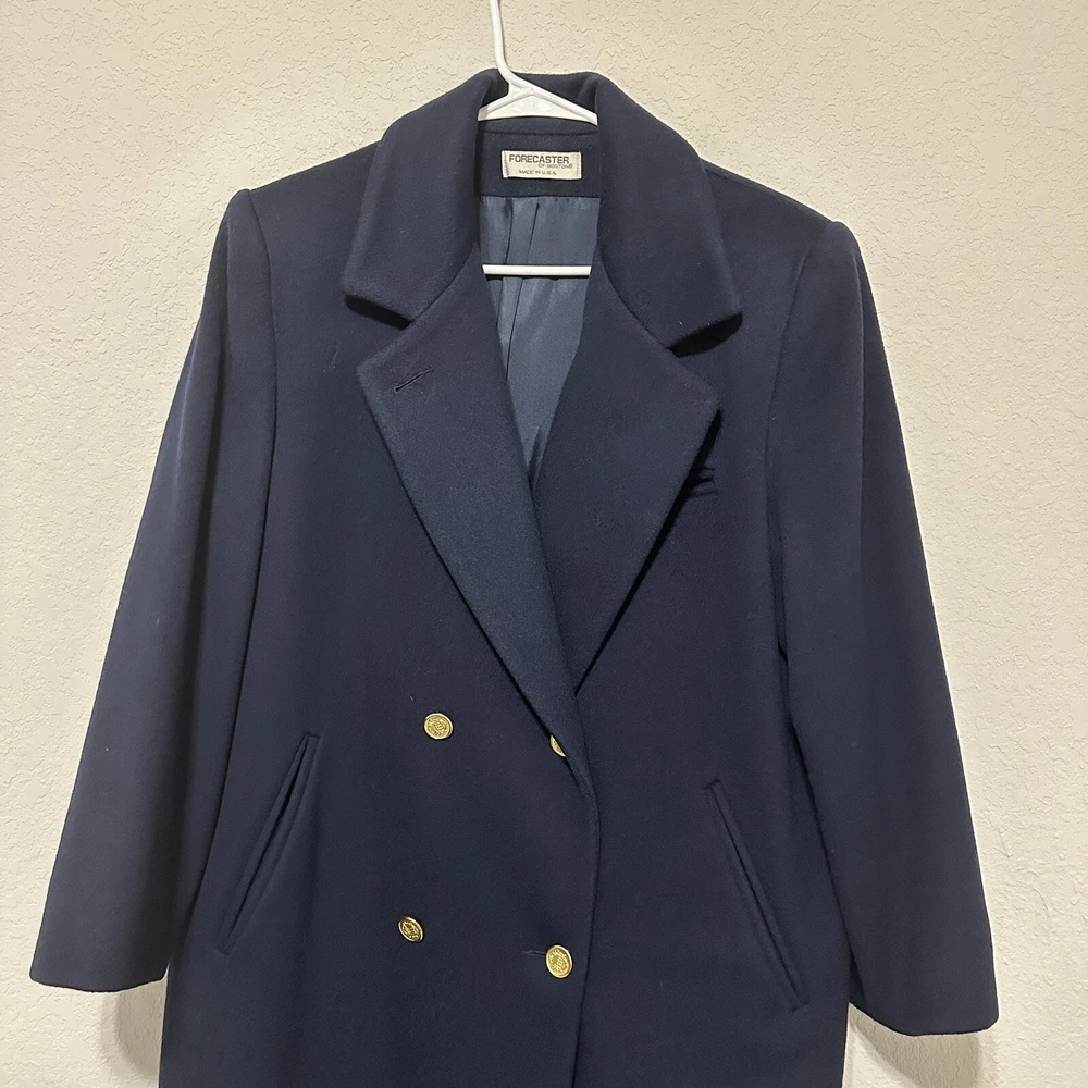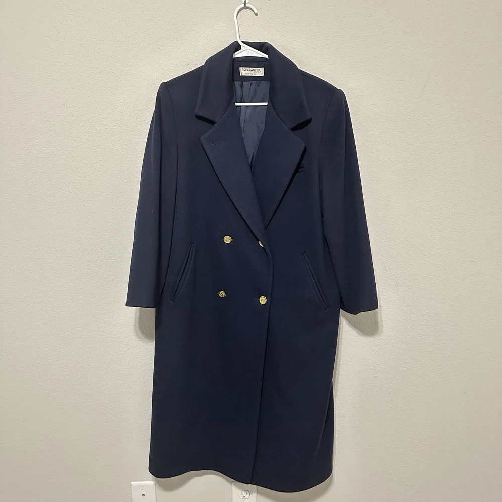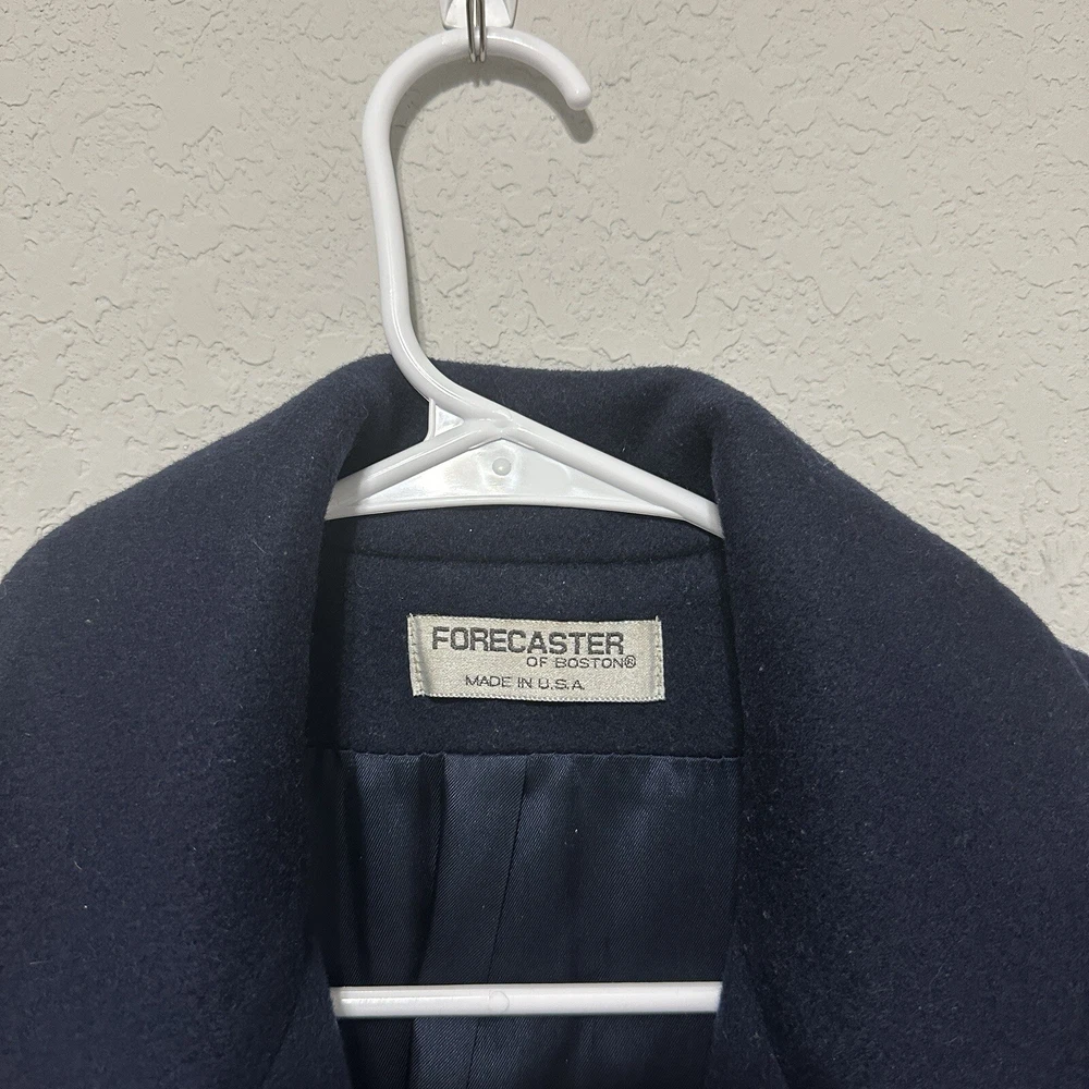 Vintage Forecaster Double Breasted Wool Peacoat Full Length Lined Blue Size 7/8 Pre-Owned Excellent Used Condition Womens size 7/8 100% Wool Double breasted Front pockets No buttons on sleeves Heavy great quality Peacoat Made in the USA Flat lay measurements: Chest: 20.5” Sleeves: 22” Length: 45” Classic, vintage, wool, fall, winter, warm, city, preppy, sales, business, blue, double breasted