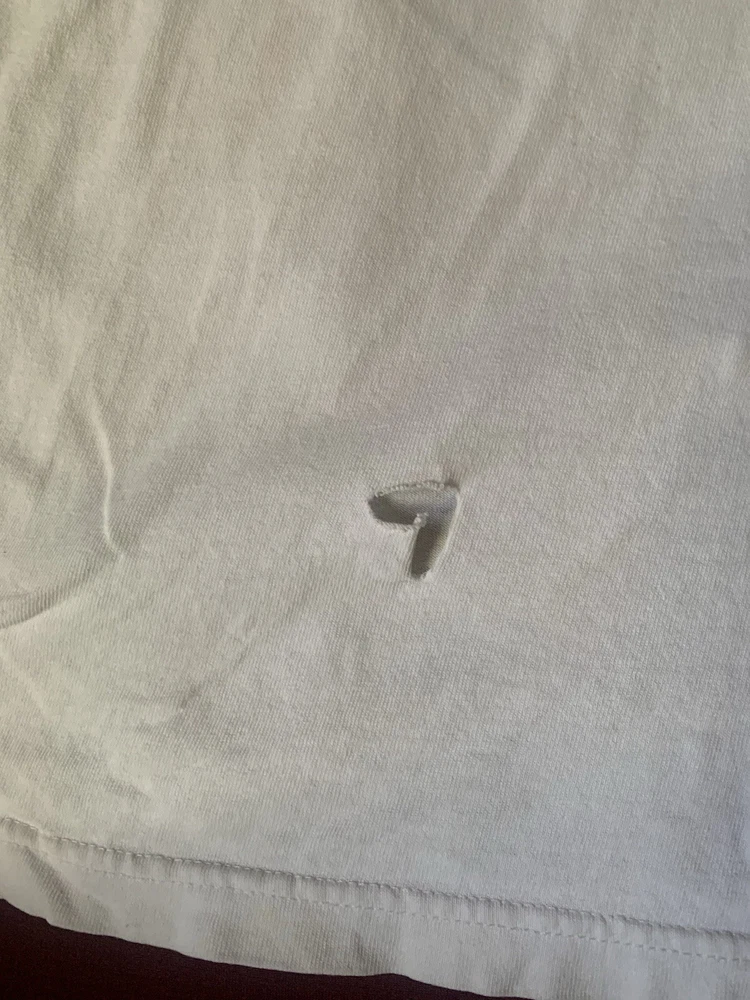 The tee shirt has a hole and stains look at the picture but if you have any questions let me know