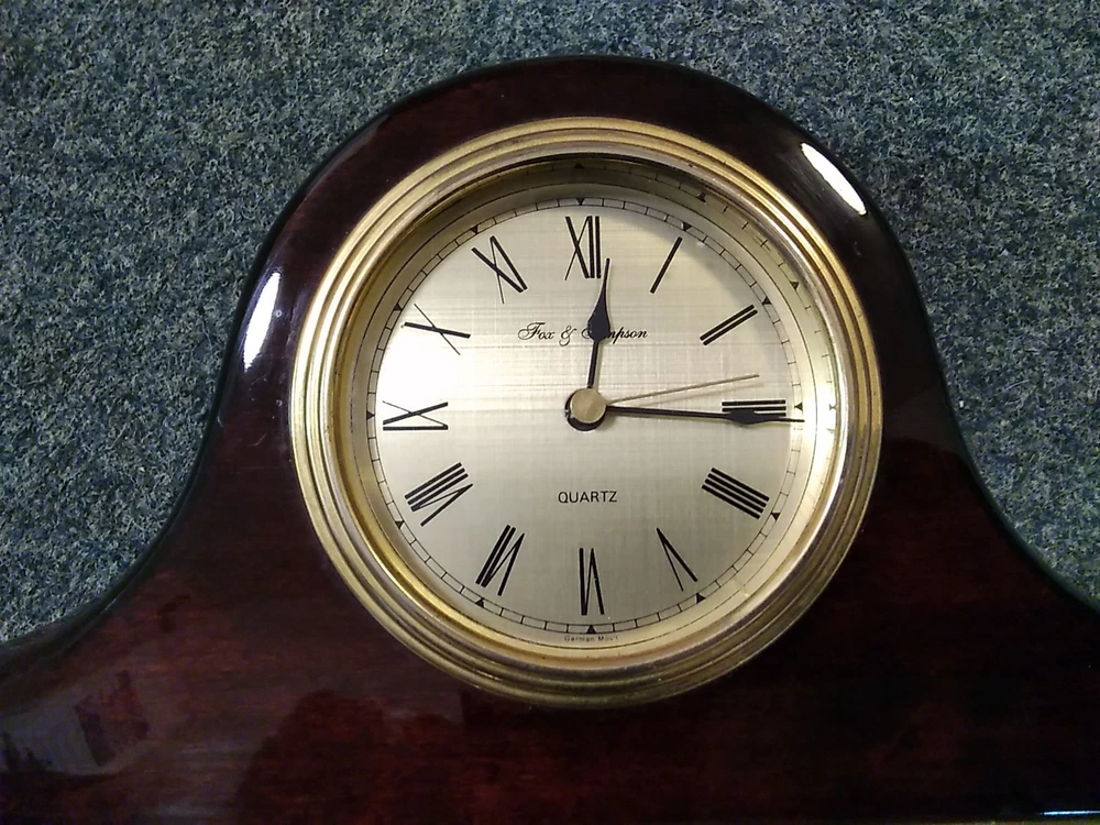 Vintage Fox & Simpson Wood Brass Quartz Mantle Piece Clock Lovely attractive design Nicely polished wood with Brass details and base Quartz battery movement ( you will need a new AA battery) A delightful time piece for fine home décor display 25 cm Long x 14 cm Tall X 4.8 cm Wide Used with some light non detracting indications of previous ownership but fully working and good condition - please see the Photographs - All money raised from the sale of this item, helps fund East Anglia's Children's Hospices East Anglia's Children's Hospices (EACH) is a charity which supports families, and cares for children and young people with life threatening conditions across Cambridgeshire, Essex, Norfolk and Suffolk. Thank you for bidding and supporting our cause! - Q&A Q. Do you ship internationally? Yes, we use eBay's Global Shipping Programme for all international postage. Q. Do you accept offers? We do not accept any offers on our auction listings. Q. How long do I have to pay for my order? We allow 7 days for customers to pay for orders. Q. What is the dispatch time? We aim to dispatch orders within 3 working days of payment received. Q. Can you hold onto my order? No, once an order is paid for, we are unable to hold off dispatch. Q. Do you combine postage? Yes, we offer combined postage for all UK buyers. Please get in touch with us before making payment, and pay for the oldest ended auction within 7 days. Gift Aid Our auction items may be sold under the Gift Aid scheme. In such circumstances EACH is acting as an agent in selling these goods on behalf of the Gift Aid donor.