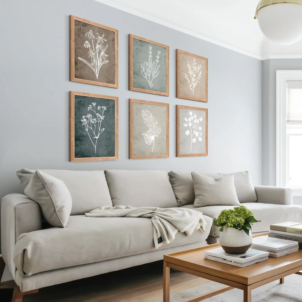 Farmhouse Wall Art Set:The wood vintage prints for wall decor measure 9.9 x 11.8 inches each,6-piece set, perfect for adding a pop of color to any room in your home.farmhouse wall art Wall decor living room:Enhance your living space with this set of 6 framed botanical print wall arts, featuring different kinds of plants and a vintage wood frame.Each flower in this set is a unique plant, adding a touch of nature to your room wall decoration and creating a calming atmosphere.wall decor living room Botanical wall art:Perfect for those who love bohemian and minimalist styles, these floral wall art prints will effortlessly complement your bathroom, kitchen, bedroom, or living room decor Flower pictures wall decor: This 6-piece farmhouse wall decor set comes with screws, making it easy to hang on the wall as a living room wall art, bedroom wall art, and kitchen wall art. 6 sets can be combined together or separated. Of course, if you don't want to hang them on the wall, they can also be placed on the fireplace or shelf Wall decor boho:The gradually deepening effect and different background colors of these framed flower pictures create a visually stunning display on your walls