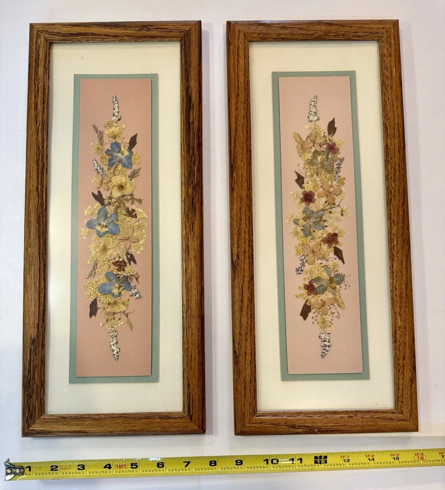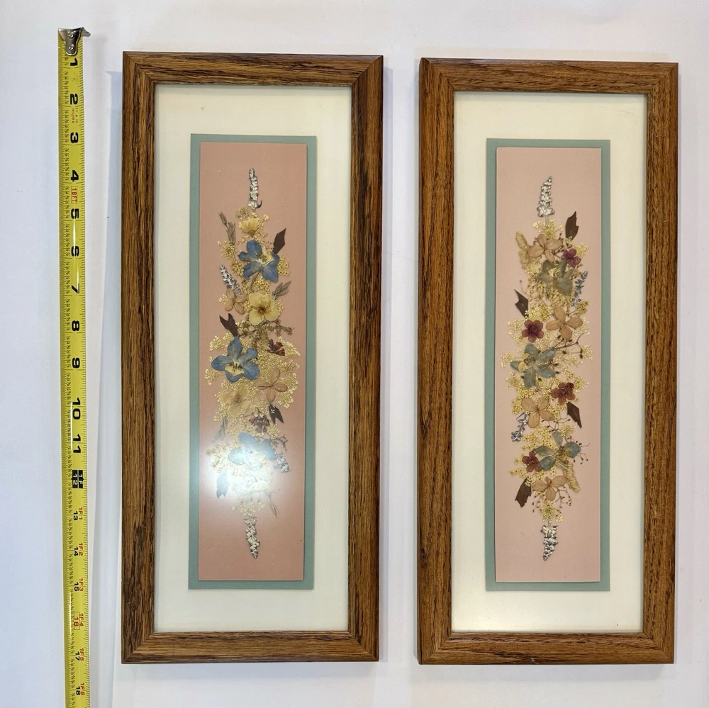 Vintage Framed Pressed Floral Art Set Of Two Cottagecore