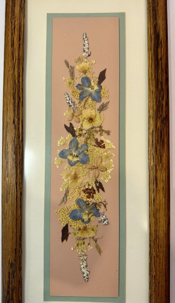 Wood Framed Pressed Flower Hanging Art Yellow Cottagecore Handmade