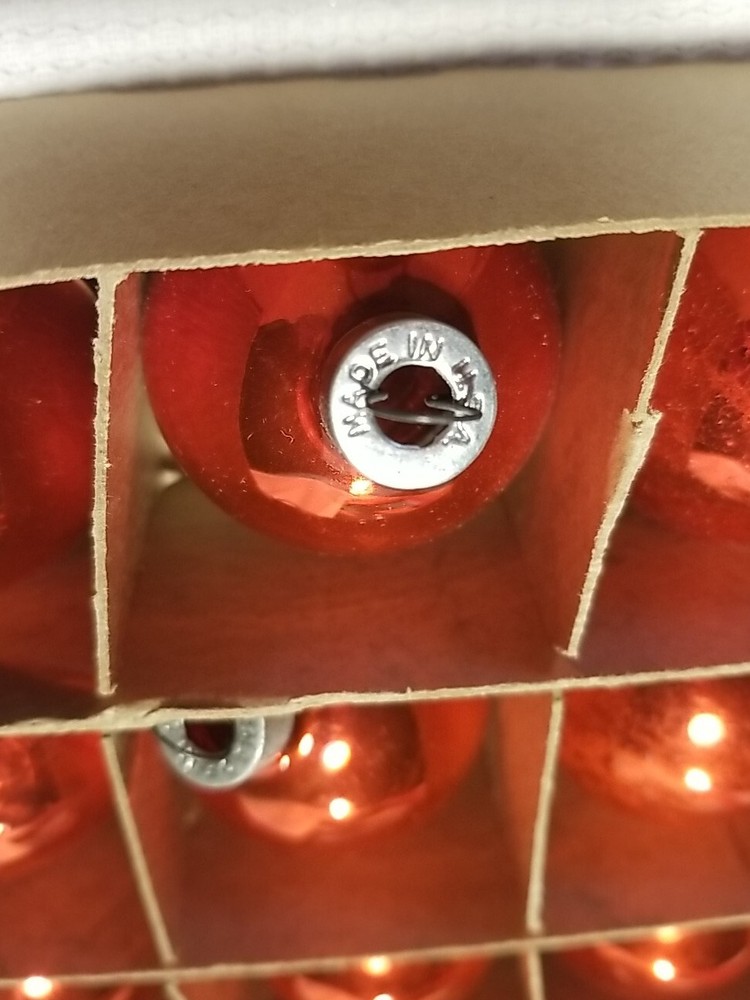 Add a vintage touch to your Christmas decor with this beautiful set of ornament hooks from Franke & Sons Baltimore U.S.A. The red cardboard box contains 12 medium-sized hooks, perfect for hanging your favorite Christmas ornaments. The box is labeled with the word "Ornaments" and features a beautiful Frank character design. These hooks are perfect for collectors and are sure to add a festive touch to your holiday decor. The set includes everything you need to hang your ornaments and is a great addition to any Christmas decor collection. Get your hands on this vintage set today and add a touch of nostalgia to your holiday season. Great vintage condition. No chips or cracks