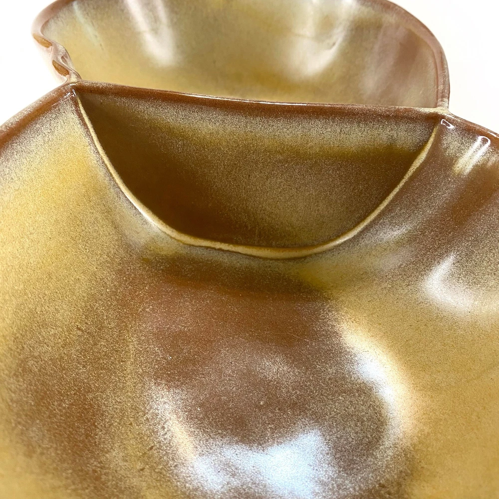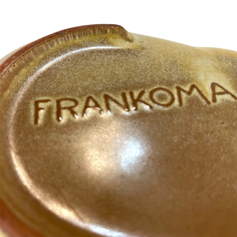 Discover the charm of classic American art pottery with this vintage Frankoma Pottery divided serving bowl. Exquisitely crafted in the United States, the bowl showcases the timeless appeal of Gold Desert, an enchanting hue that adds a touch of elegance to any table setting. The oval shape and unique divided design make it an ideal piece for serving relish or desserts, bringing both function and style to your culinary presentations. Adhering to traditional pottery techniques, this piece hails from the revered era of Frankoma/Gracetone, renowned for its quality and craftsmanship. Whether you're a collector of vintage pottery or seeking to infuse your home with a slice of history, this clay bowl is a testament to the enduring beauty of artisanal goods.