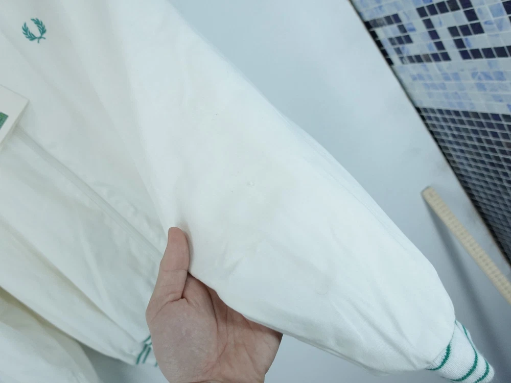 Genuine Vintage Fred Perry Bomber Jacket Measurements shown in the photos With tags but please note a nick on the sleeve and a couple of small marks as shown in the photos I will ship this item out via 2-3 Day Mail with a tracking number for confirmation I ship items out EVERY DAY so EXPECT a QUICK delivery! Please feel free to ask any questions you may have I answer most questions instantly! Please note that used items may have some pilling, wear and fading (especially around the collar and other seams). Any notable damage or excessive pilling/wear/fading will be noted.