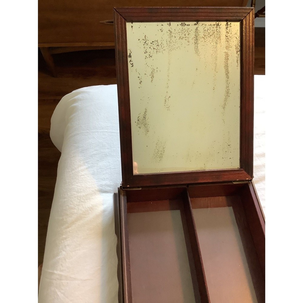 Item Length: 11 in Item Width: 9 in Theme: Victorian French Vintage: Yes Seller Notes: “EUC Vintage Great condition little signs of visible flaws great charachter” Items Included: Jewelry Box, Jewelry Organizer, Storage Box Suitable For: All Jewelry Momentos Trinkets Department: Unisex Adults Material: Wood Color: Woodgrain Personalize: No Item Depth: 4 in Features: Mirror Era: 1940's to 1950's Brand: French La Mode Illustree Shape: Rectangle Capacity: Extra Large Type: Jewelry Box Country/Region of Manufacture: Unknown Lining Material: Unlined