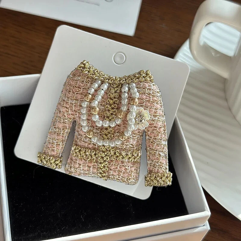 Vintage French Pearl Tassel Corsage Temperament Pink Brooch Fashion Accessories