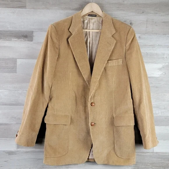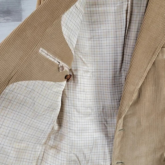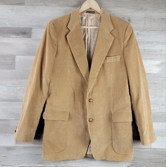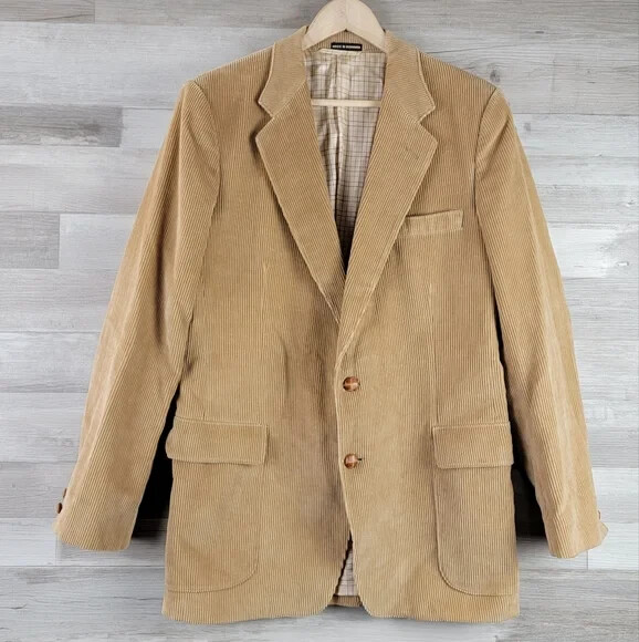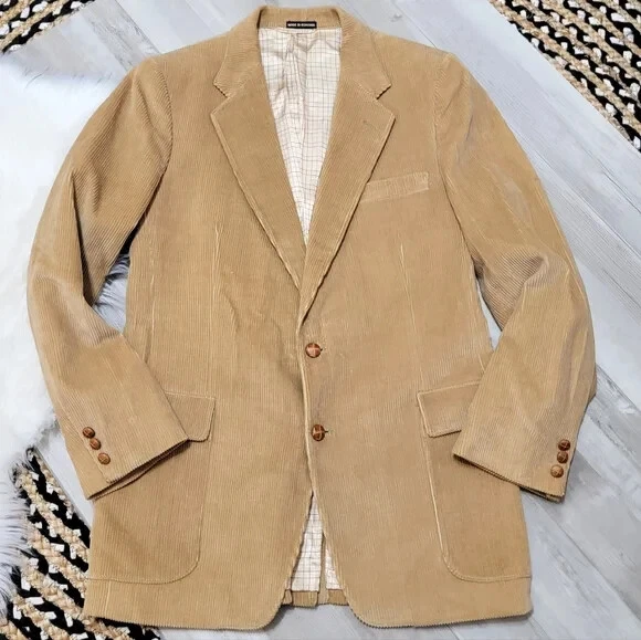 Vintage French Tan Whale Corduroy Blazer Men's Size 42R Slim Fit