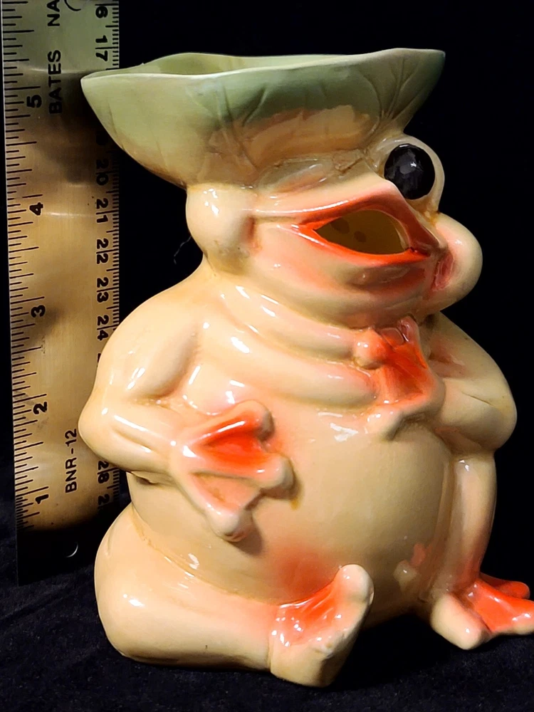 This vintage frog tealight holder is a charming addition to any collection of candle holders. Crafted from ceramic material with a majolica style, it features a delightful frog design that adds a touch of whimsy to any room. Perfect for collectors or those who appreciate unique and decorative items, this candle holder is a must-have. Whether you use it to hold your favorite scented candle or simply display it as a standalone decoration, this vintage frog tealight holder is sure to be a conversation starter.