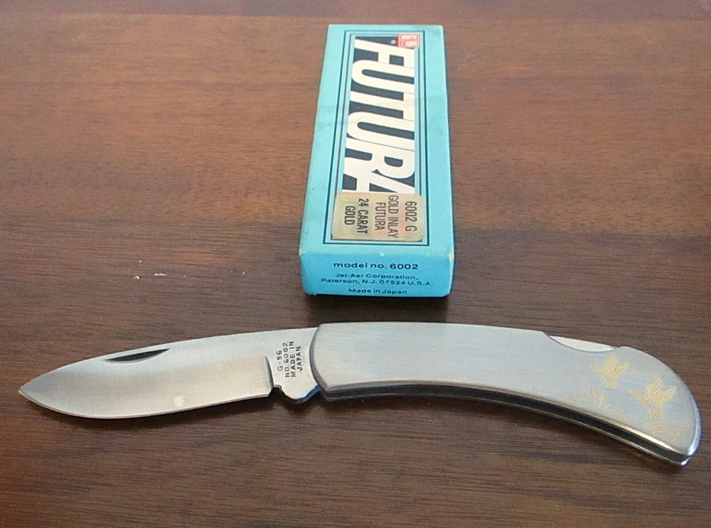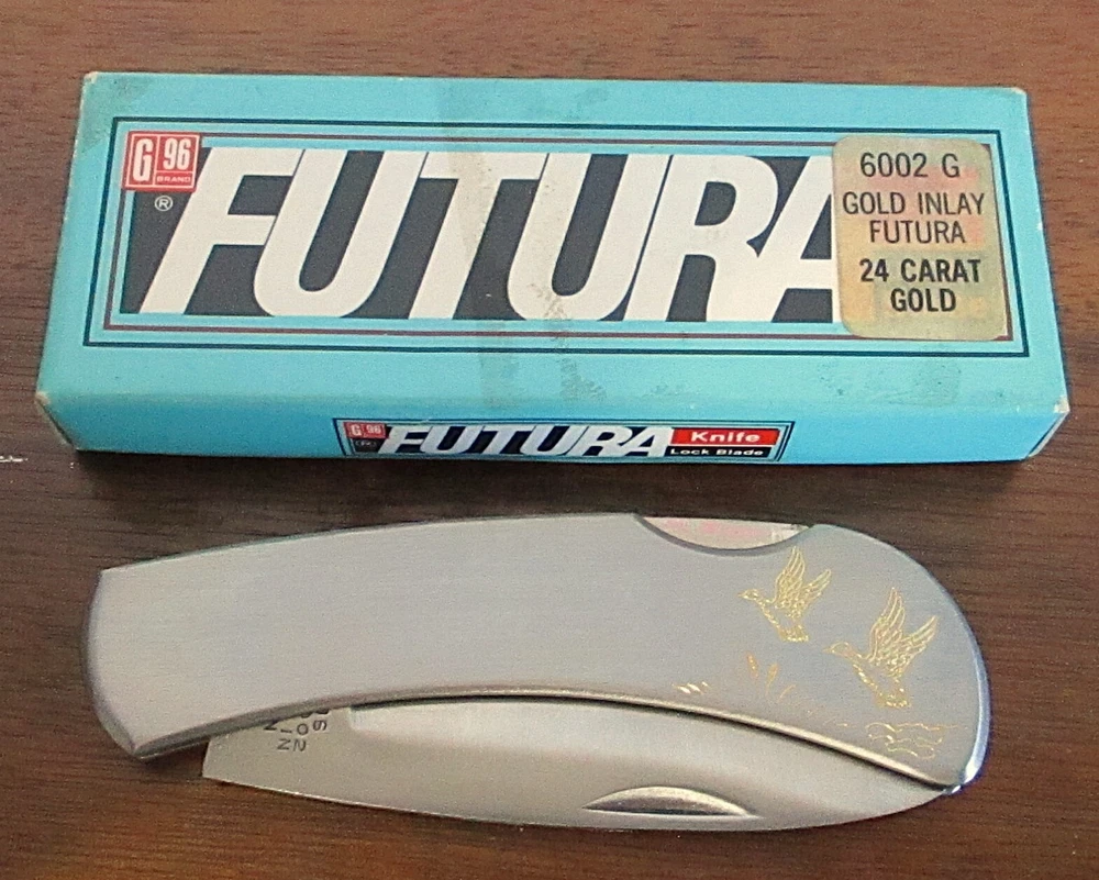 Vintage Futura 6002 G Gold Inlay Etched Ducks MCM Pocket Knife Used in good condition with box. My feedback will come after I receive feedback from you insuring, you are happy. Please view all photo and ask all questions before purchasing. I will send you a tracking number once I have shipped the item. Thank you for viewing.