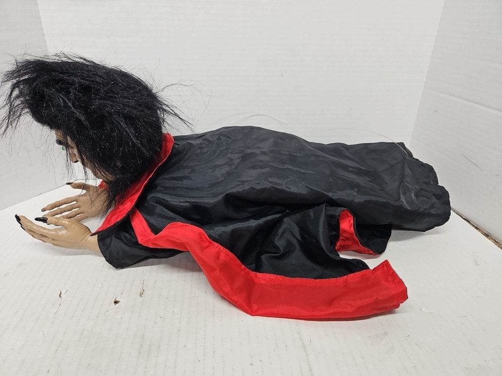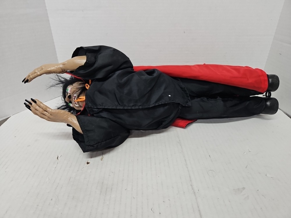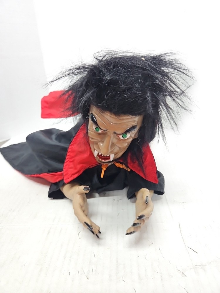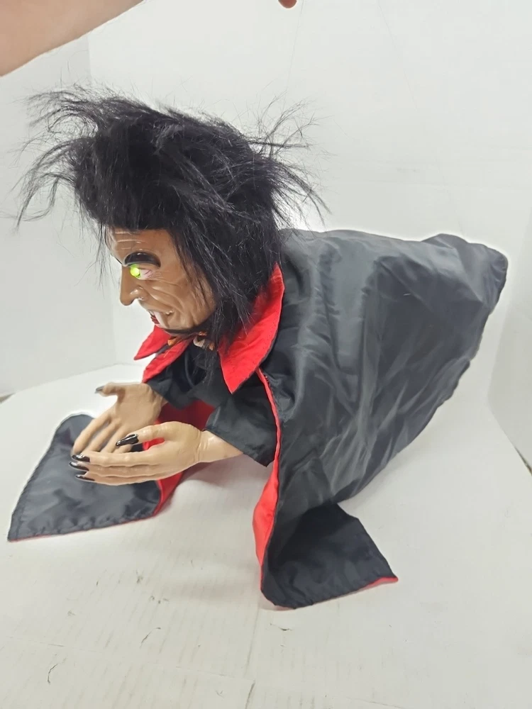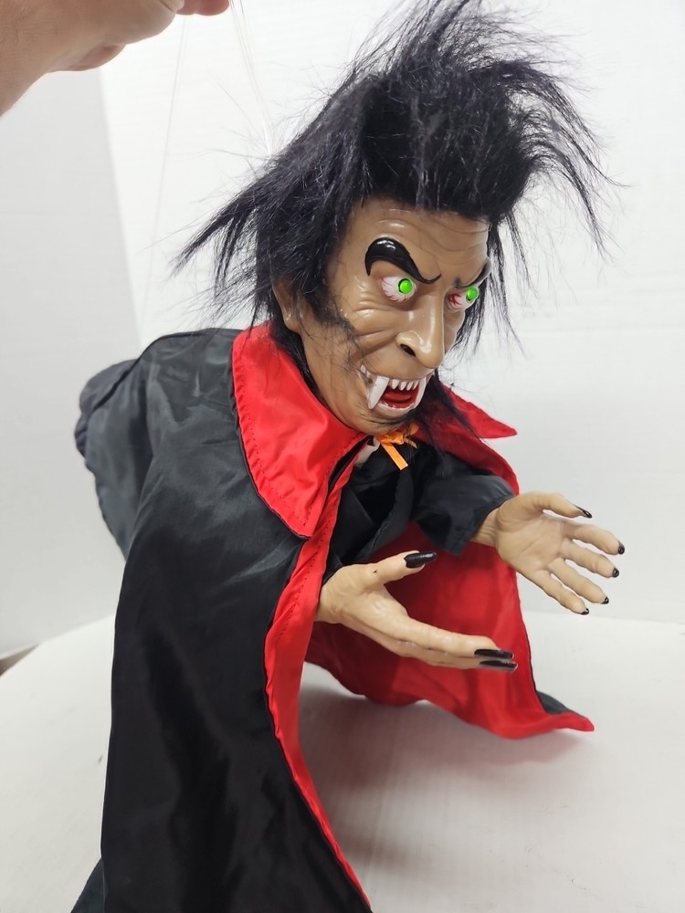 The Vintage Gemmy Halloween Animated Decor 24" Hanging Animated Vampire Dracula is a nostalgic collectible from the 1990s, perfect for adding a spooky touch to your Halloween decor. Made of durable plastic and featuring a multicolor design, this Gemmy creation is sure to delight fans of vintage Halloween props. With its animated movements and classic vampire design, this hanging ornament is sure to be a standout piece in any Halloween display.