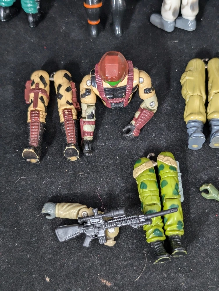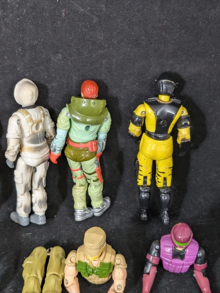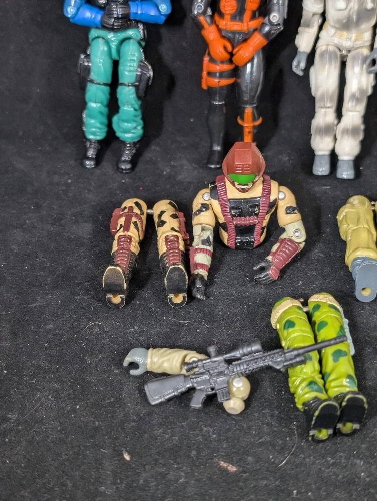 This Vintage GI JOE Action Figure Lot includes figures and body parts from the 1980's and 90's. The set features characters such as Deep Six, Wet Suit, and Snow Job, all made from durable plastic material. The figures stand at 3.75 inches tall and are in great shape for their age. This lot is perfect for collectors of vintage action figures, especially those interested in the G.I. Joe franchise. The figures come from the popular TV show G.I. Joe Arah and are sure to bring back memories of childhood playtime. Don't miss out on the opportunity to add these classic action figures to your collection.