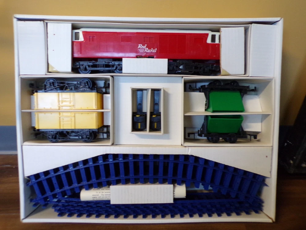 Please check all my listings for some great deals this week This week it is all about passing on the great deals! Original and NOT a KO. Vintage Gakken Japan Mighty Red Rocket B/O Electric O Scale Train NMIB Tri-Ang. Item comes in New Old Store Stock condition that has never been played with. Item was released in Japan by Gakken. Item was manufactured by Tr-Ang Hong Kong. Locomotive has been tested and works perfectly. Box has some shelf wear and tape repair on one corner of box. Item comes exactly as shown and is SOLD AS IS. This would be great introductory piece to your Vintage Toy train model collection. Please review all pictures. Please be sure to check all of my auction for Transformers and More Japanese Robots/Anime toys from the 70's and 80's are being listed almost everyday- Great opportunity to combine auctions and save on shipping! Details: Size: O Scale Material: Plastic Condition: NOS Manufacturer: Gakken Japan/ Tri-Ang Hong Kong Year: 1960's Special Note: I always try to do the best at photographing each item to show its true color and detail. Color differences due to flash and lighting sometimes may occur. Detailing may appear more or less defined when photographed. All items come from a smoke free home. Please check out my other great items. Thanks for looking! Click here to view my other items Payment Methods: Payments are accepted via Paypal with confirmed address within 5 days of auction closing. Paypal accepts Visa, MasterCard, Discover Card, and American Express. I prefer payment by Paypal within 5 days of auction ending. If payment is not received within times stated, the item will be relisted and I will file a non-paying bidder alert. Thanks in advance for understanding. Shipping: Buyer pays all shipping costs. I ship via Priority Mail with Delivery Confirmation. To keep shipping cost down- I ship Parcel Post on large packages with delivery confirmation. I am very conscientious about sending items in a timely manner. I ship out Monday-Saturday. Unless immediate payment is required, I will combine multiple purchase shipping for items won within 2 days if you notify me in advance of your intent. I only use Ebay International Shipping for International shipping and will not accept any other shipping option Posted with eBay Mobile