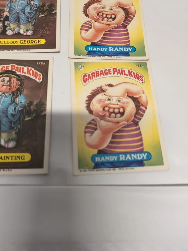 This is a lot of 9 vintage Garbage Pail Kid trading cards. These cards are part of the Non-Sport Trading Card category and are perfect for collectors of Garbage Pail Kids memorabilia. The lot includes various designs and characters from the franchise.