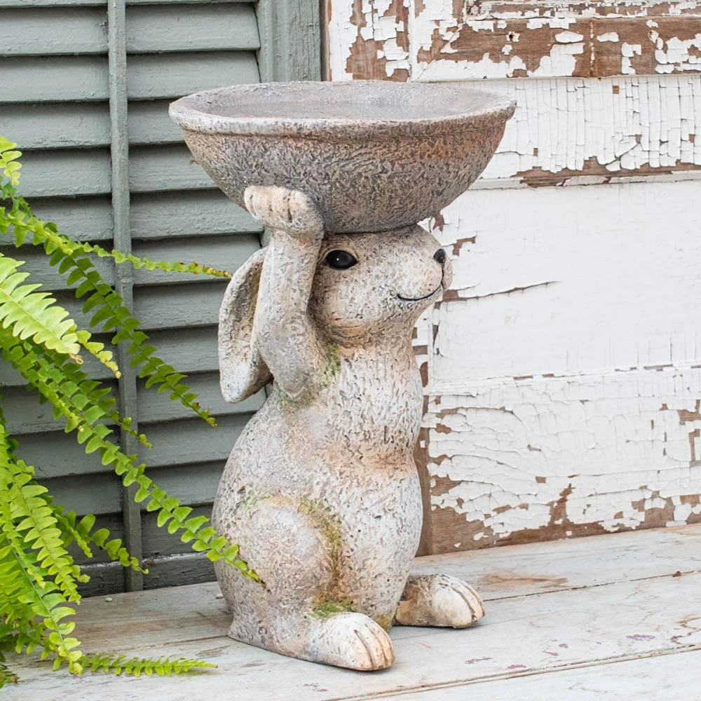 Vintage Garden Statue 16" Antique White Resin Bunny Rabbit w/Flower Plants Charming Design – A delightful bunny stands ready to serve, holding a basin-style feeder that adds charm to any garden or outdoor space. Multi-Purpose Use – Can be used as a bird feeder, bird bath, succulent planter, or even as a decorative holder for keys and mail. Hand-Painted Resin – Crafted to resemble aged concrete with a rustic finish, while remaining lightweight and easy to move. Perfect Size – Measures 16" tall x 10" wide with a 9.75" diameter bowl, providing ample space for birds to perch or plants to thrive. Outdoor & Indoor Friendly – Durable and weather-resistant, ideal for garden landscapes, patios, porches, or even as an entryway accent. Shipping We offer FREE shipping on all orders! We ship within Three business days of payment, usually sooner. We use a selection of shipping services such as UPS, FedEx, USPS etc. We only ship to the lower 48 states, no APO/FPO addresses or PO Boxes allowed. Local pickups and combined shipping options are not provided at this time. Return You can return a product for up to 30 days from the date you purchased it. Any product you return must be in the same condition you received it and in the original packaging. Please keep the receipt. Payment We accept payment by any of the following methods: PayPal Please pay as soon as possible after winning an auction, as that will allow us to post your item to you sooner! Feedback Customer satisfaction is very important to us. If you have any problem with your order, please contact us and we will do our best to make you satisfied. Contact Us If you have any queries, please contact us via ebay. We usually respond within 24 hours on weekdays. Please visit our eBay store to check out other items for sale! Thank you for shopping at our store.