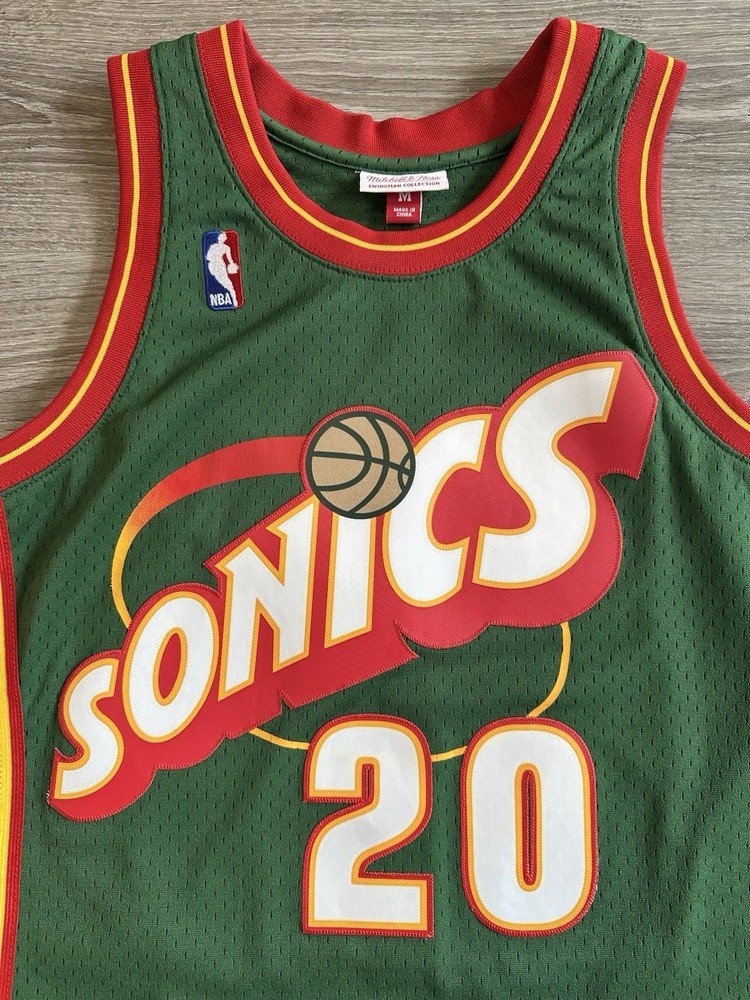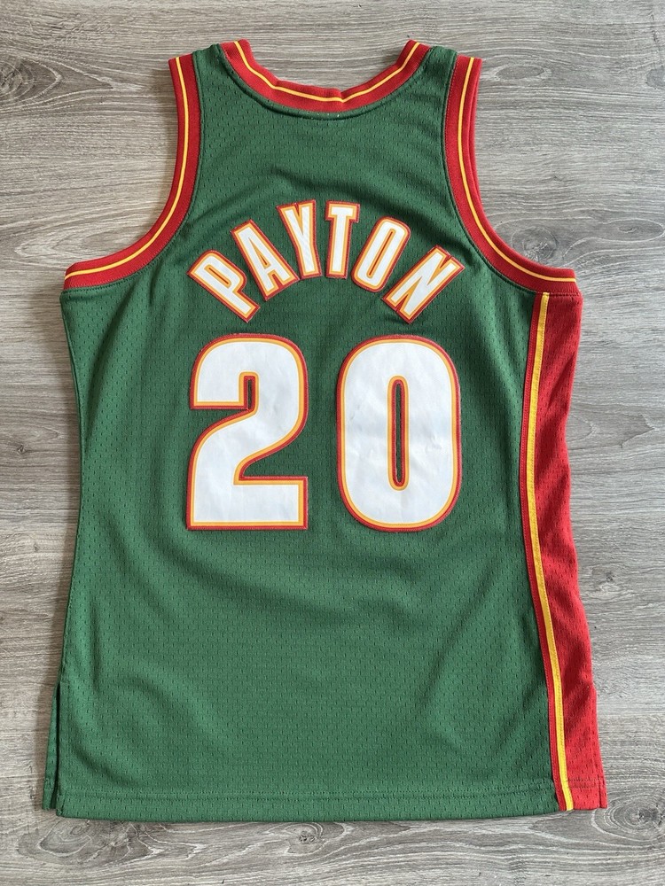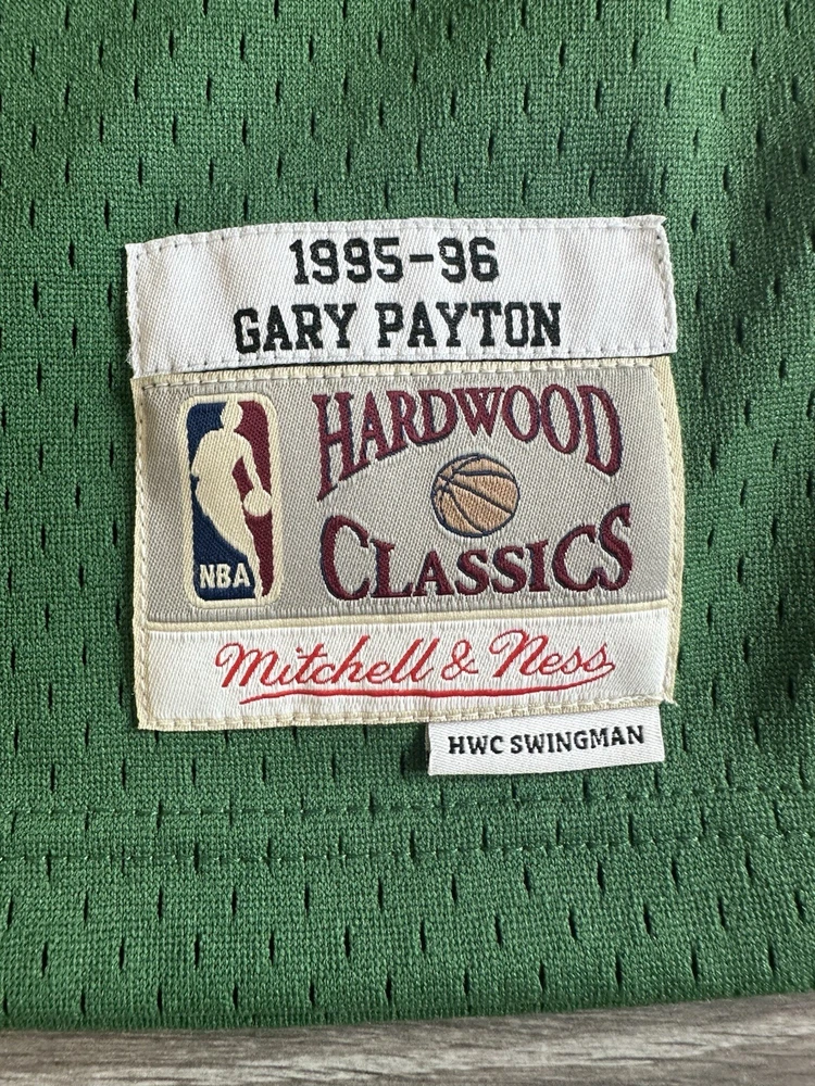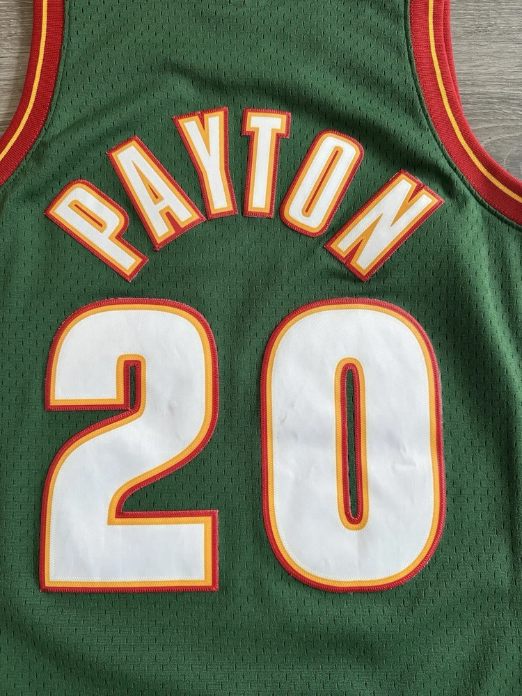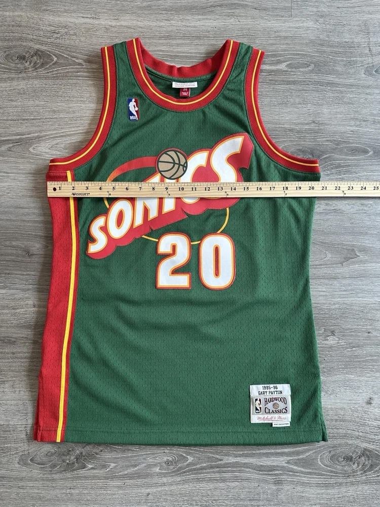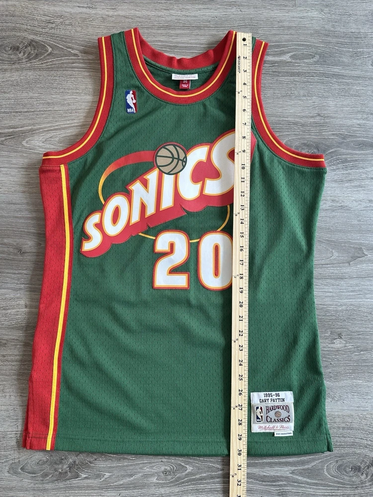 Celebrate your hoop heritage with the rare, fully stitched Mitchell & Ness Gary Payton jersey. This piece of basketball memorabilia is a must-have for any Seattle SuperSonics fan or collector. The jersey showcases the iconic green of the team, complete with Payton's name, for an authentic look and feel. Crafted with attention to detail, this size medium jersey is officially licensed by the NBA and meticulously made to represent the regular season. Whether you're adding to your collection or showing off your team pride, this jersey from the renowned Mitchell & Ness brand is a timeless piece of sports history. Measurements shown in photos.