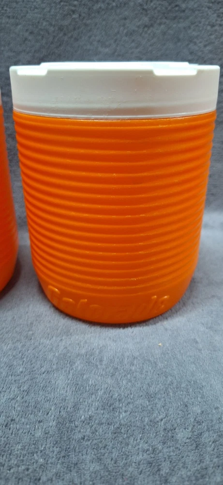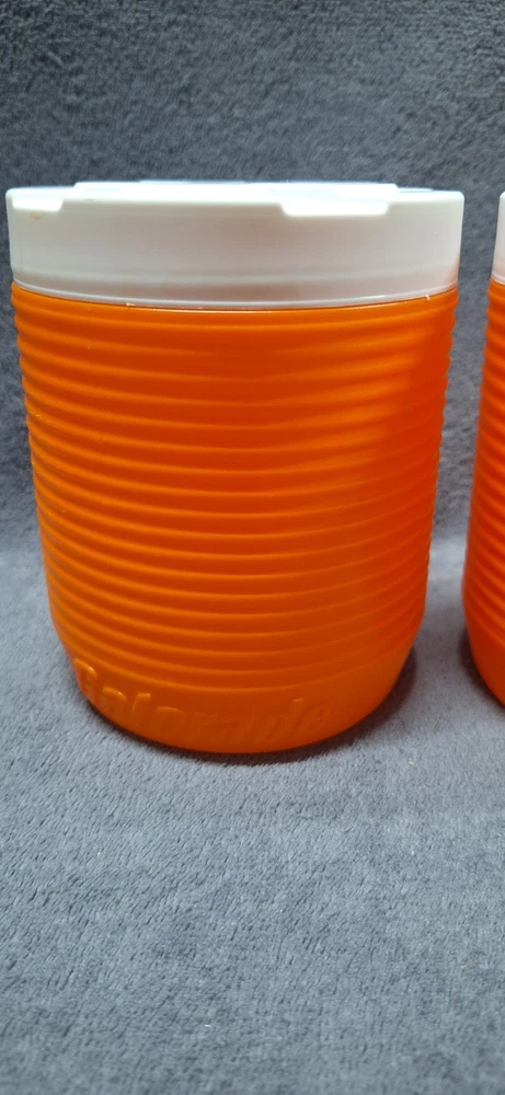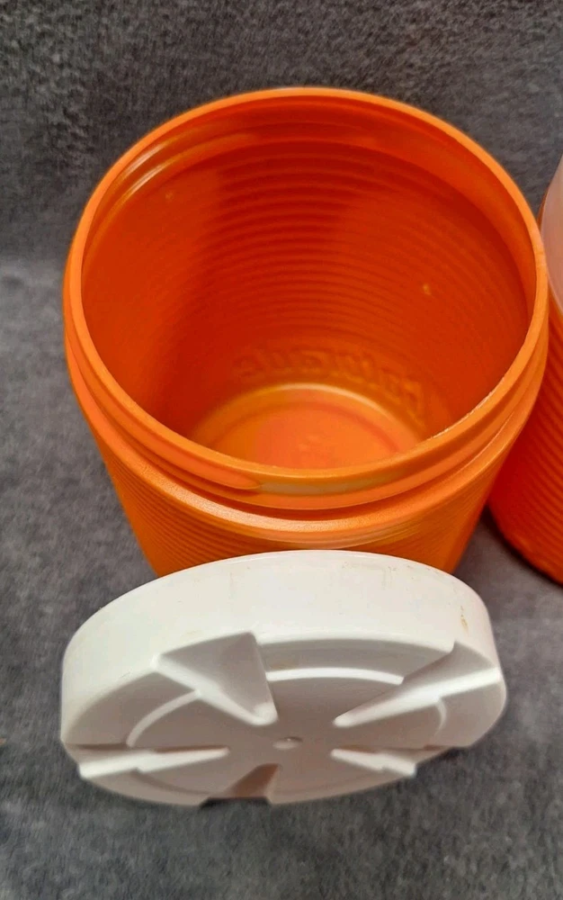 Qty of 2 Vintage Gatorade Powdered Drink Mix Orange Containers with White Lid 4.5 Inch Tall Gatorade Sports Drink