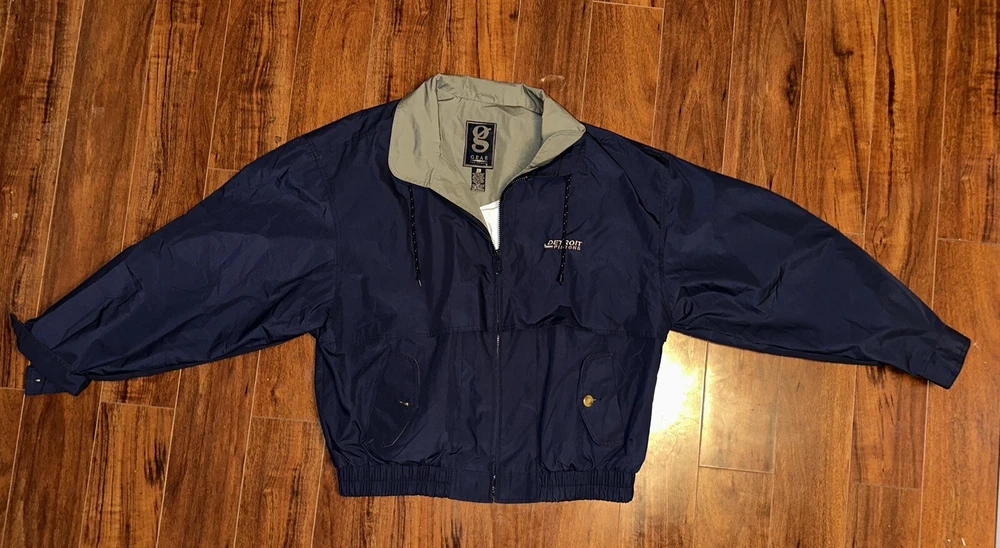 This vintage jacket from Gear For Sports is a must-have for any Detroit Pistons fan. The navy blue softshell fabric is accented with the team's logo, making it a perfect addition to any casual outfit. The jacket features a full zip front, making it easy to layer on chilly fall and spring days. This is a great compliment to the 90s era and any pistons lover.The XL size and regular fit make it comfortable for men to wear, while the cotton lining and polyester insulation add warmth without adding bulk. This classic windbreaker is in great vintage condition and is sure to become a favorite piece in any collection. Shipped with USPS Shipped ASAP 30 day return policy. Buyer payers shipping. Send offers and message me if you have any questions.