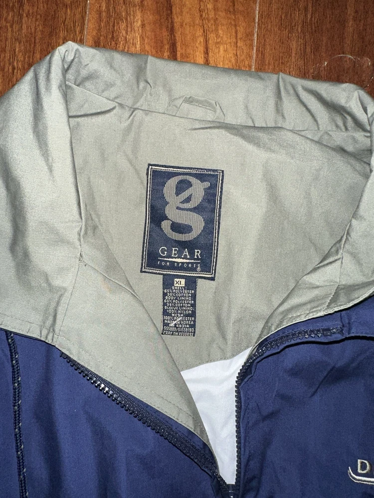 Insulation Material: Polyester Features: Full Zip Seller Notes: “Pre-owned, brand new like condition. Still very much wearable” Theme: Classic Size Type: Regular Size: XL Color: Navy Lining Material: Cotton Pattern: Solid Style: Windbreaker Occasion: Casual Department: Men Accents: Logo Brand: GEAR FOR SPORTS Fabric Type: Softshell Outer Shell Material: Polyester Season: Fall, Spring Type: Jacket Country/Region of Manufacture: Korea, Republic of Vintage: Yes