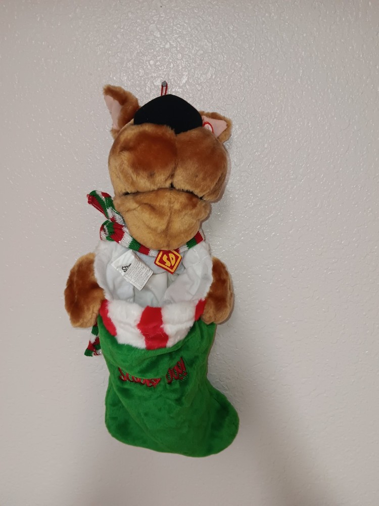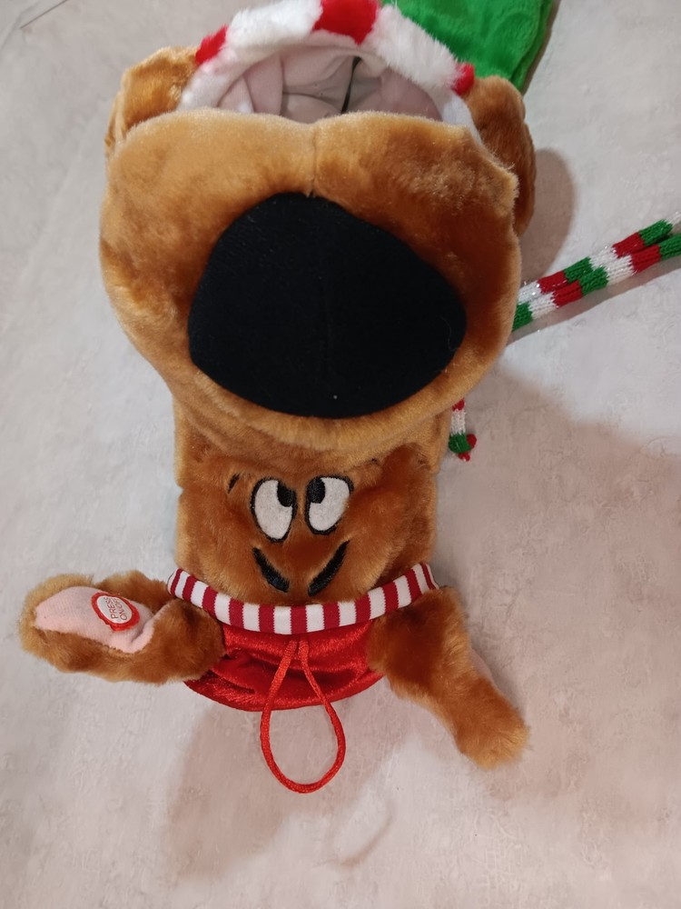 Original/Licensed Reproduction:OriginalSubject:Scooby DooBrand:Cartoon NetworkShape:AnimalItem Height:18.5 inNumber of Items:1Theme:ChristmasPattern:CartoonsFranchise:Scooby-DooSet Includes:Singing Christmas StockingSeller Notes:“WORKS! Still has a loop for handing. Great vintage condition! Ready for a new home!”Occasion:ChristmasCharacter:Scooby DooVintage:YesColor:GreenType:Christmas StockingFeatures:Musical