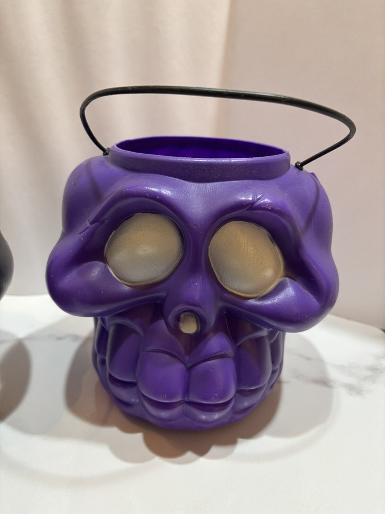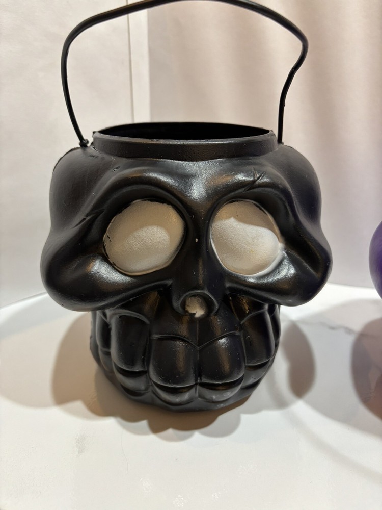 VTG GENERAL FOAM MOLD PURPLE & BLACK SKULL HALLOWEEN TRICK OR TREAT PAIL BUCKETS. IF YOU HAVE ANY QUESTIONS OR WOULD LIKE MORE PICTURES PLEASE FEEL FREE TO CONTACT ME AND AS ALWAYS THANK YOU FOR LOOKING!
