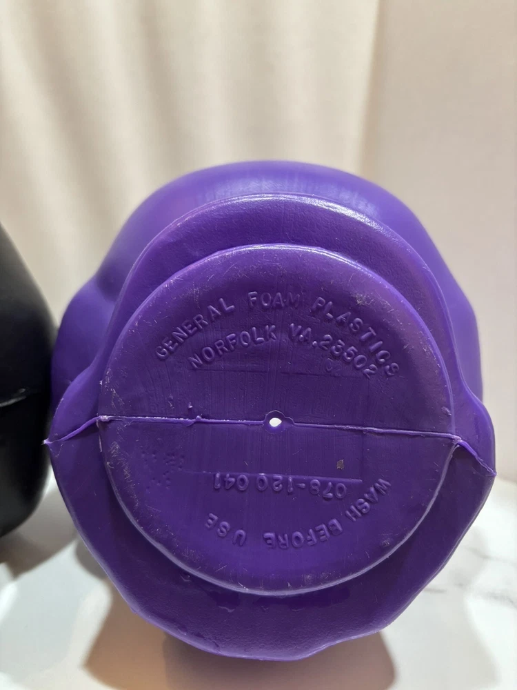 Year Manufactured: 1990 Color: Purple and black Material: Plastic Type: Candy buckets Occasion: Halloween Time Period Manufactured: 1990-1999 Brand: General foam