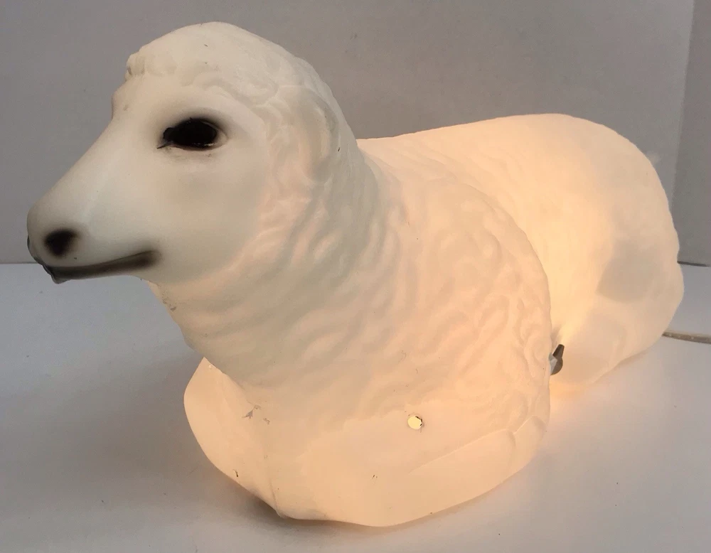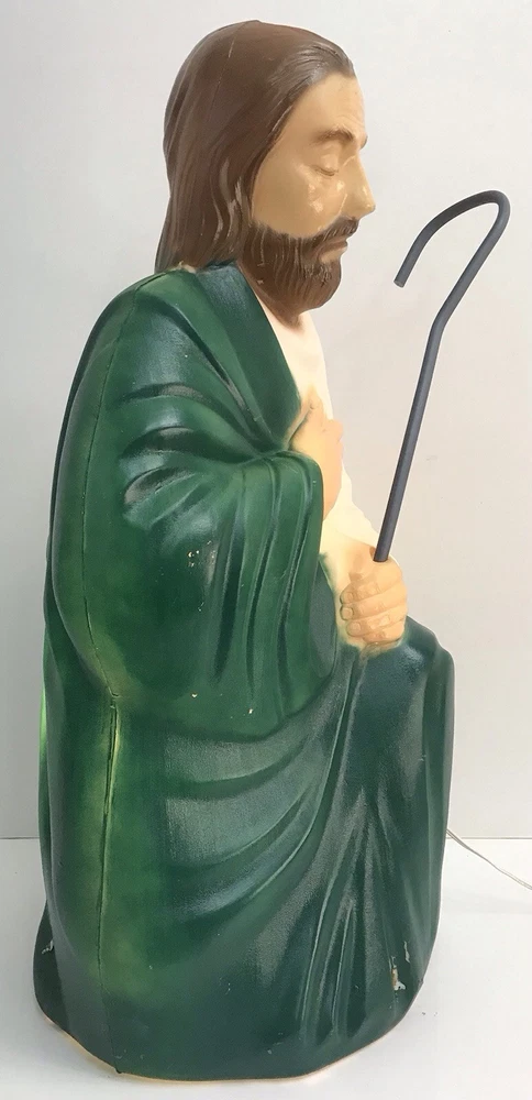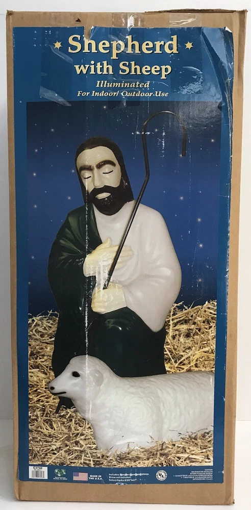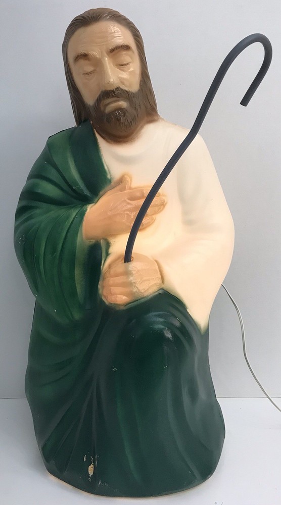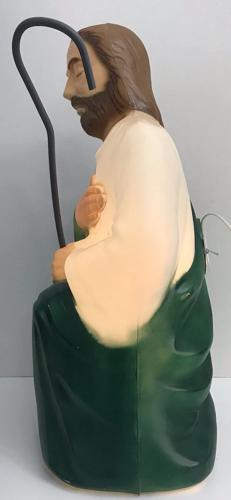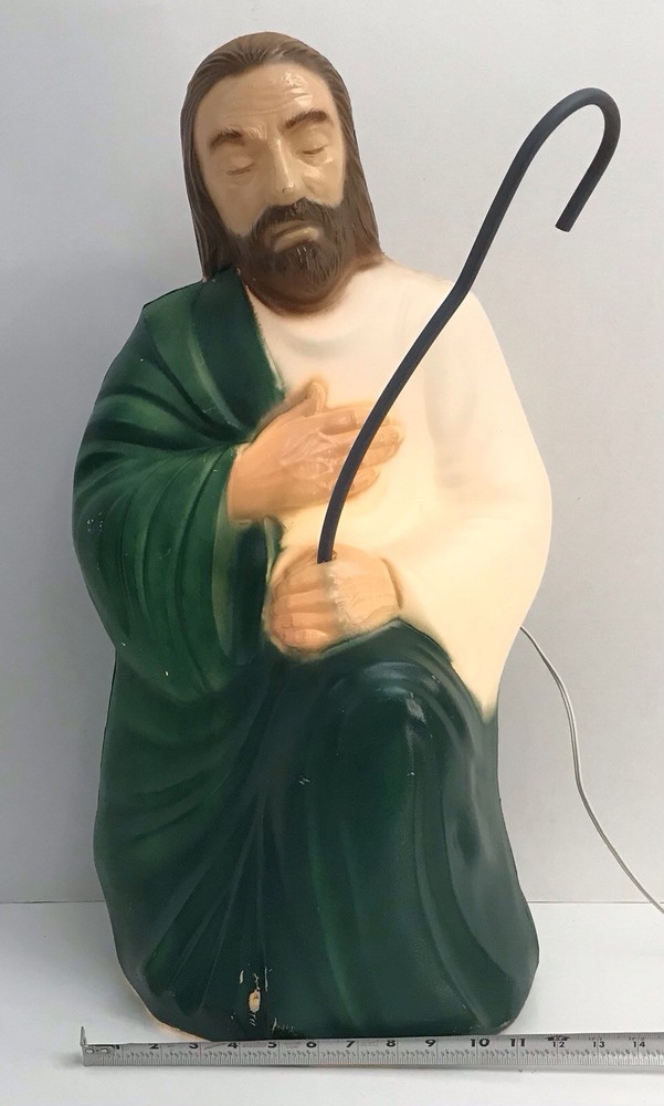 Vintage General Foam Nativity Scene Shepherd and Sheep Lighted Blow Mold *Read* Nice working condition. The shepherd’s staff has a bend to it, not sure if it can be bent safely in another direction or not, didn't want to break it. Please see photos for condition details and measurements.