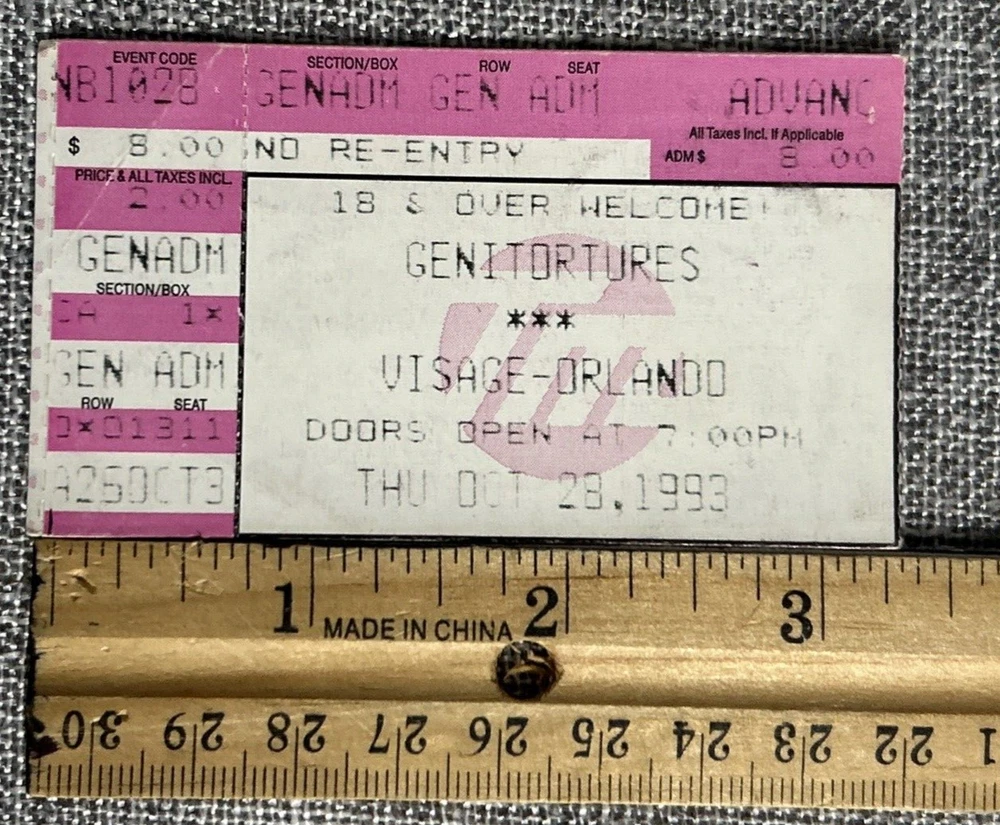 Vintage Genitorturers Concert Ticket Stub The Station Fern Park 5/30/93 120 Days of Genitorture Tour Pre-Owned - Please see Pictures for Details