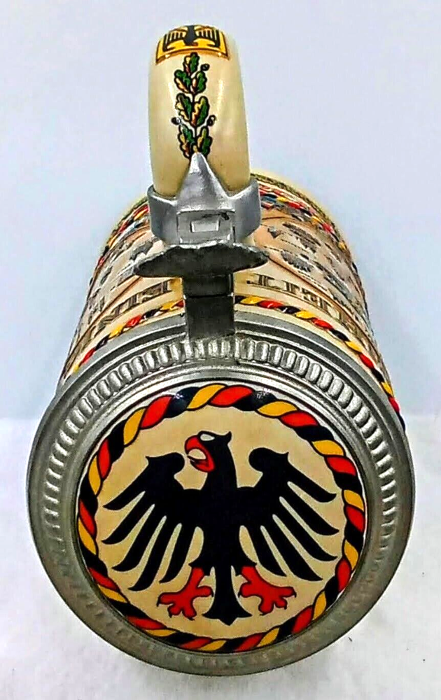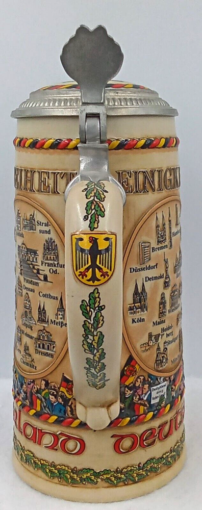 This vintage German beer stein is a fantastic find! The detailed "Einigkeit und Recht und Freiheit" design and sturdy unification lid give it authentic charm. The minor scuff on the bottom doesn’t detract from its beauty—check the photos for details. The seller packs with care, ensuring safe delivery without hidden fees. Perfect for collectors or as a unique decor piece. Highly recommend The Burly Owl Lady for more great items!