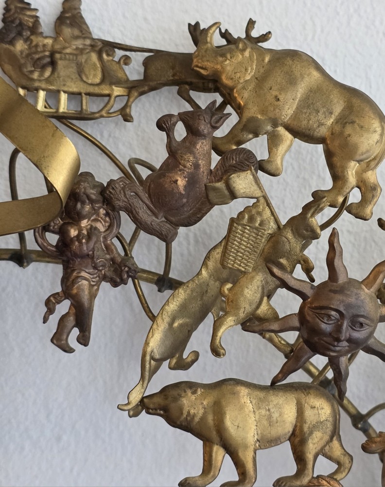 Vintage Petites Choses German Dresden Brass Metal Holiday Animal Wreath 16". Condition is Used. Shipped with USPS Priority Mail.