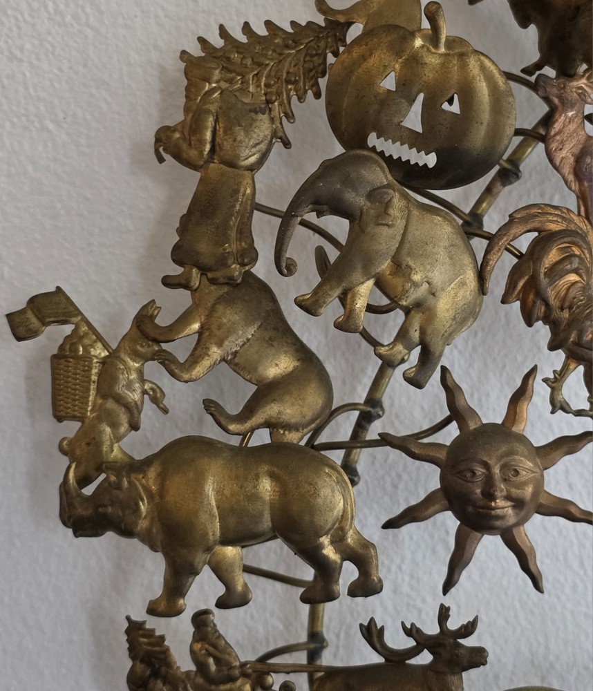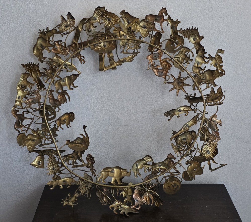 This vintage wreath is absolutely charming! The intricate Dresden brass animals add a whimsical touch, and the 16” size is perfect for holiday decor. Even though it’s pre-loved, the craftsmanship shines—great condition with lovely patina. Shipping was fast and secure. A unique, festive piece that stands out!