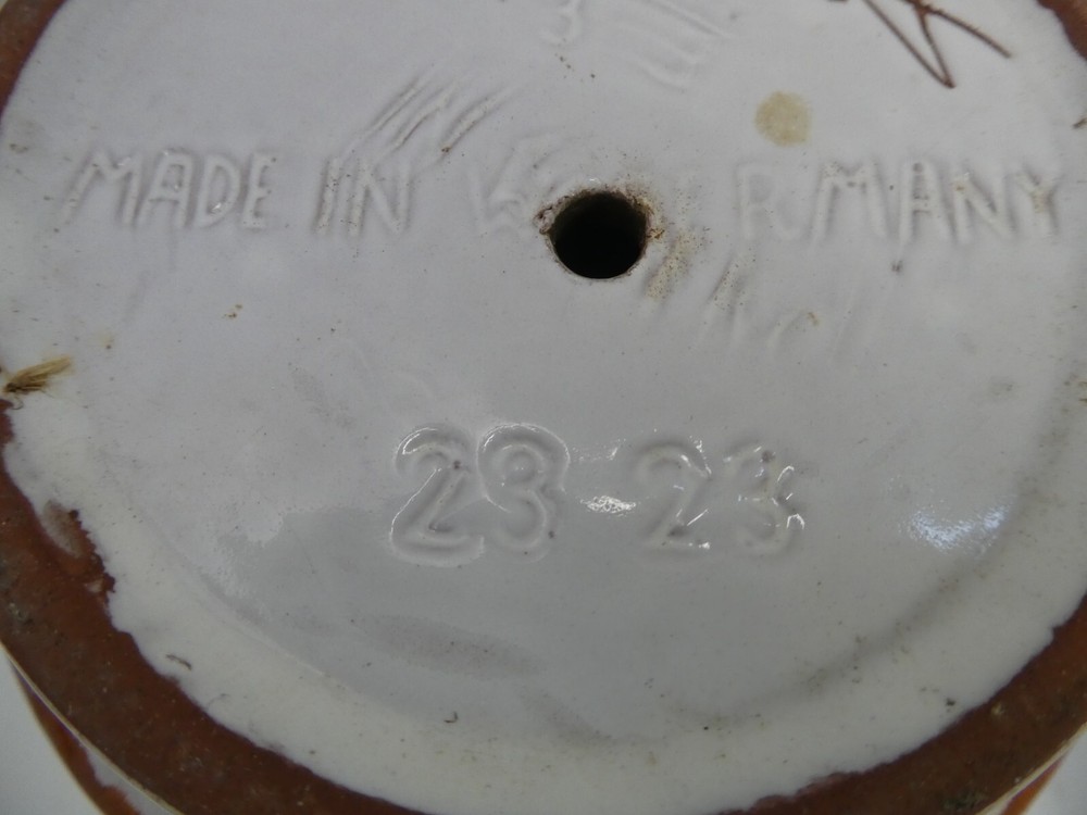VINTAGE GERMAN POTTERY MID CENTURY POT PLANTER URN VASE #23 23 TO BASE 14 CM HIGH 16 CM DIAMETER GOOD CONDITION - NO SAUCER PLATE STAMPED / MARKED TO BASE SEE PHOTOS FOR BEST GUIDE TO CONDITION I AM LISTING SOME OTHER ESTATE PIECES I can combine for postage. CHECK MY OTHER LISTINGS FOR MORE
