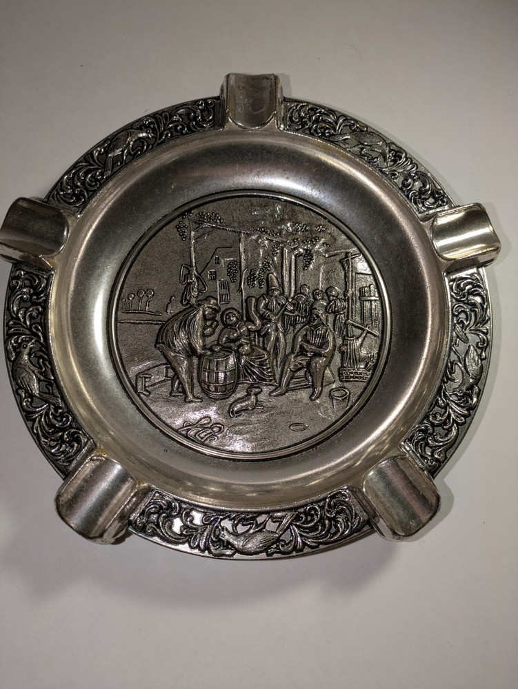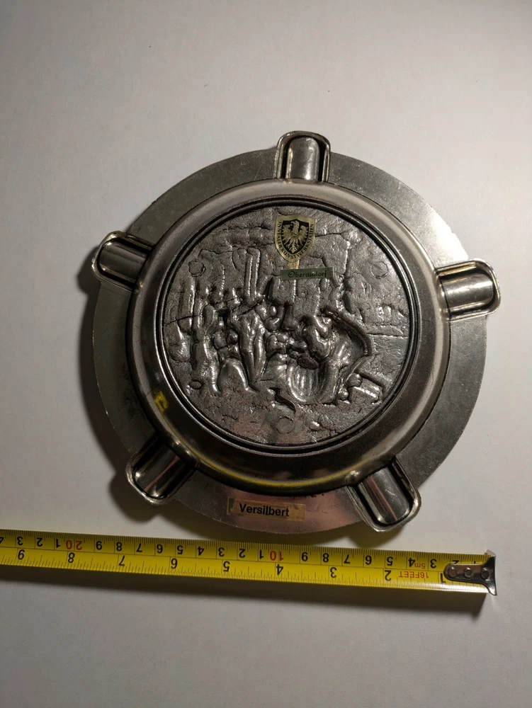This is a vintage silver-plated (versilbert) German-made ashtray. The original owner of this ashtray was a native German who immigrated to the US and brought many artworks and Deutsch books of his motherland to the US. This fine ashtray has been unmarred by time and would serve well as a decorative table piece.