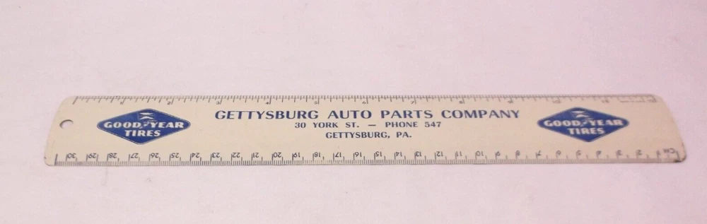 Nice Vintage Gettysburg Auto Parts Company 12" Goodyear Ruler. --------- -----------""Please Check All Photos for Condition"". Most of the items we sell are vintage or used. We try to describe them as accurate as we can, however we might miss a DETAIL in the description from time to time. With that said our items are "SOLD AS IS". PLEASE ASK QUESTIONS! Please bid with confidence! Thanks for viewing our auctions! Combine Shipping Available