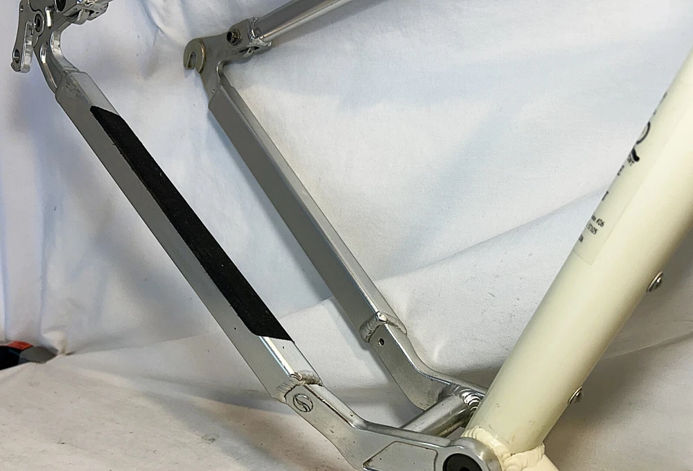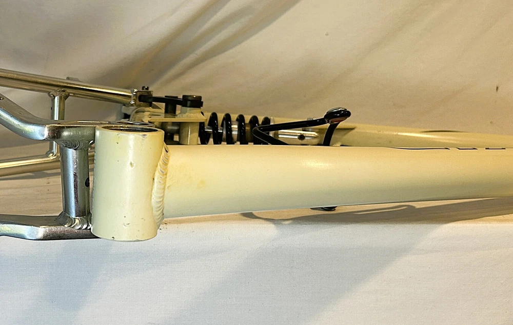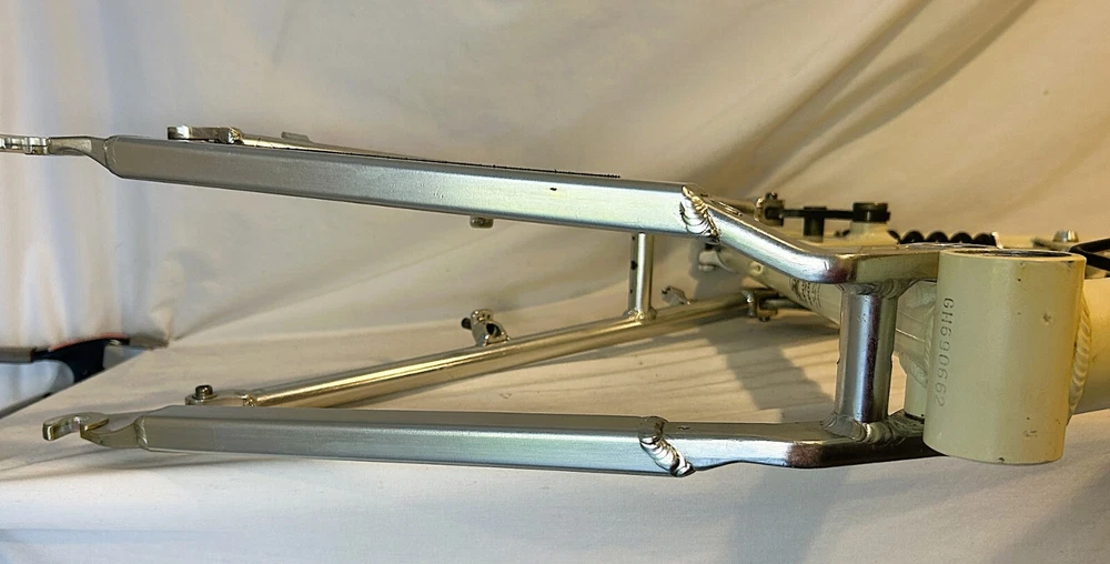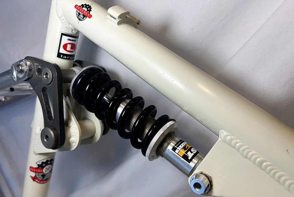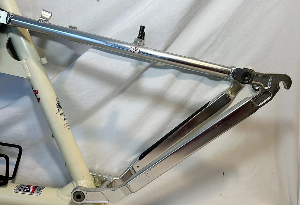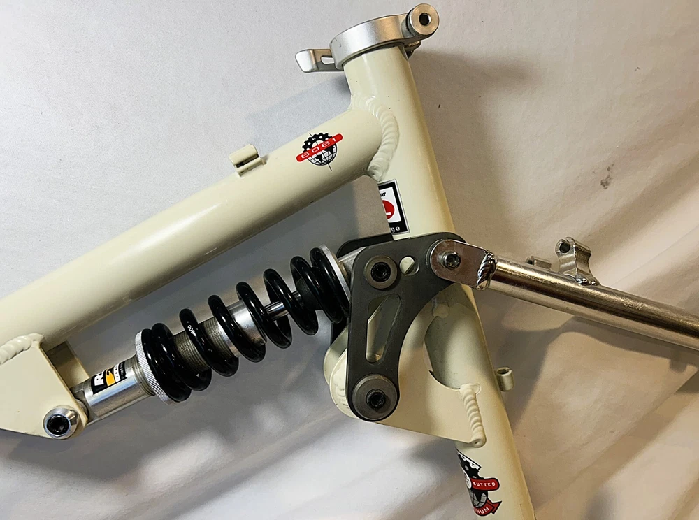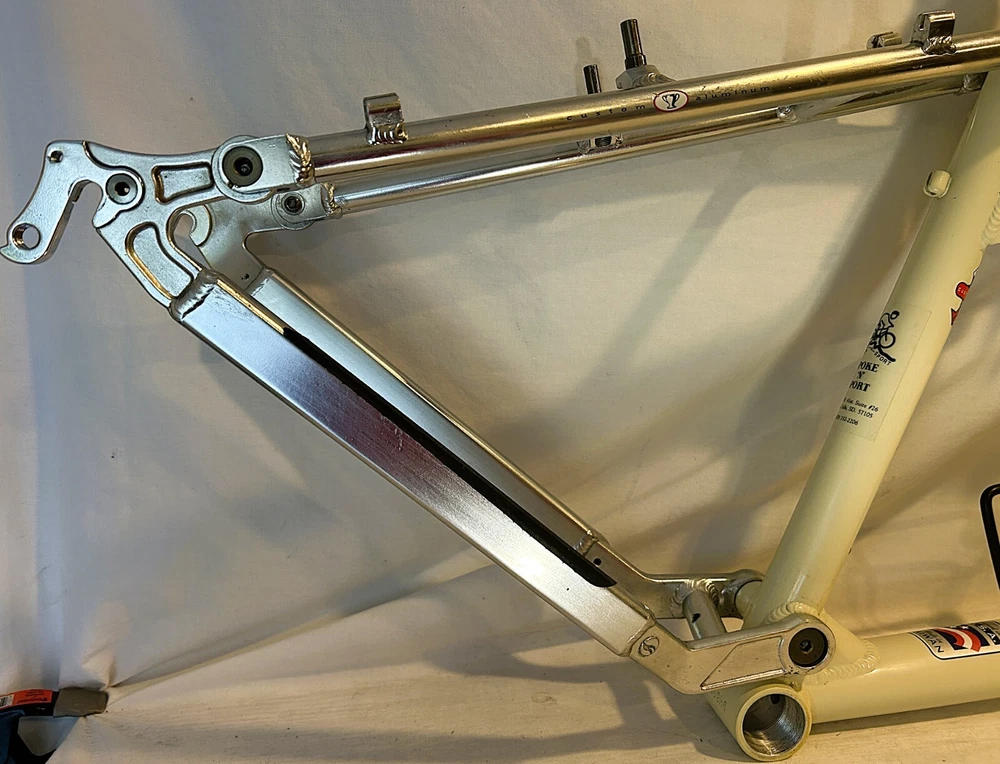 Vintage Giant ATX 970 full suspension aluminum Mountain Bike frame Vintage 90's full suspension mtb frame. This frame takes 26" wheels and was running cantilever brakes. This is labeled as a Large frame - see measurements below. In good condition but still is a used item that shows some wear that may include chips, scratches, cable rub, and other defects associated with a 25-30 year old bike. Please view all pics for an accurate representation. Approximate Measurements : Center to top of top tube : 19" Center to top of seat tube : 20.5" Top tube length: 23" Head tube length: 135mm Head tube diameter: 1.125 (1 & 1/8") Rear Spacing: 135mm Seat post size: 30.8 Weight: 7 lbs. 4 oz. IMPORTANT: Please read this description and thoroughly view all pictures before bidding. Please ask questions if needed. International Shipping will be handled by Ebays Global Shipping Program so fees will apply. I have no control or access to view these fees...all handled by EGSP. I will gladly leave Positive Feedback upon receiving it. Thank You and Have an Awesome Day !