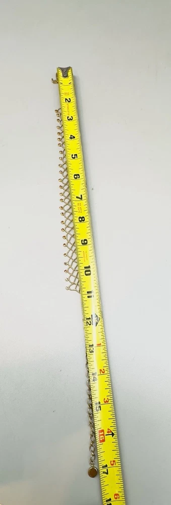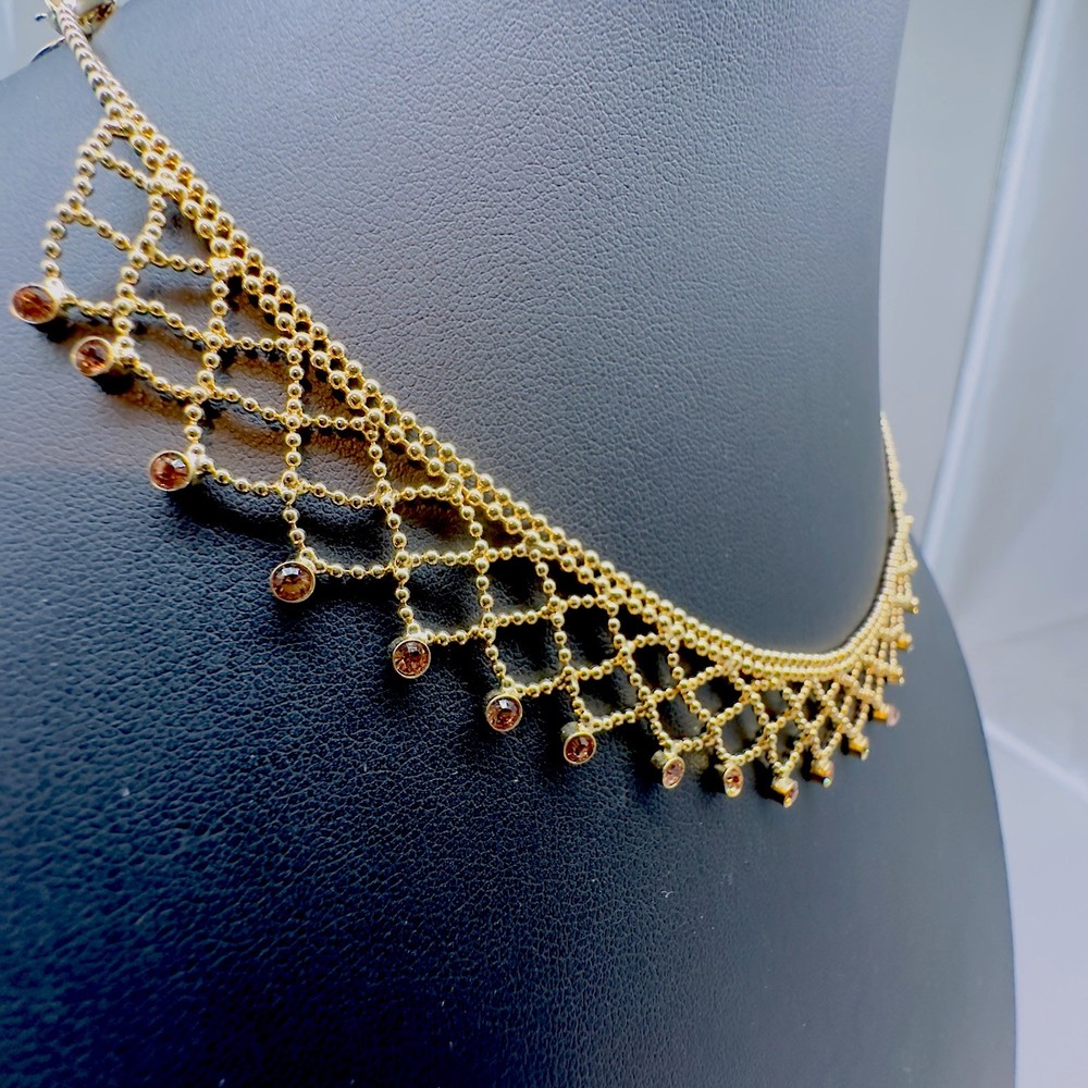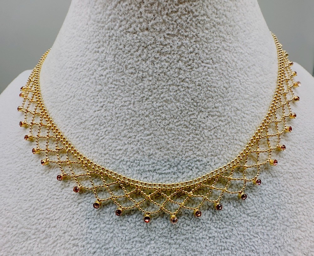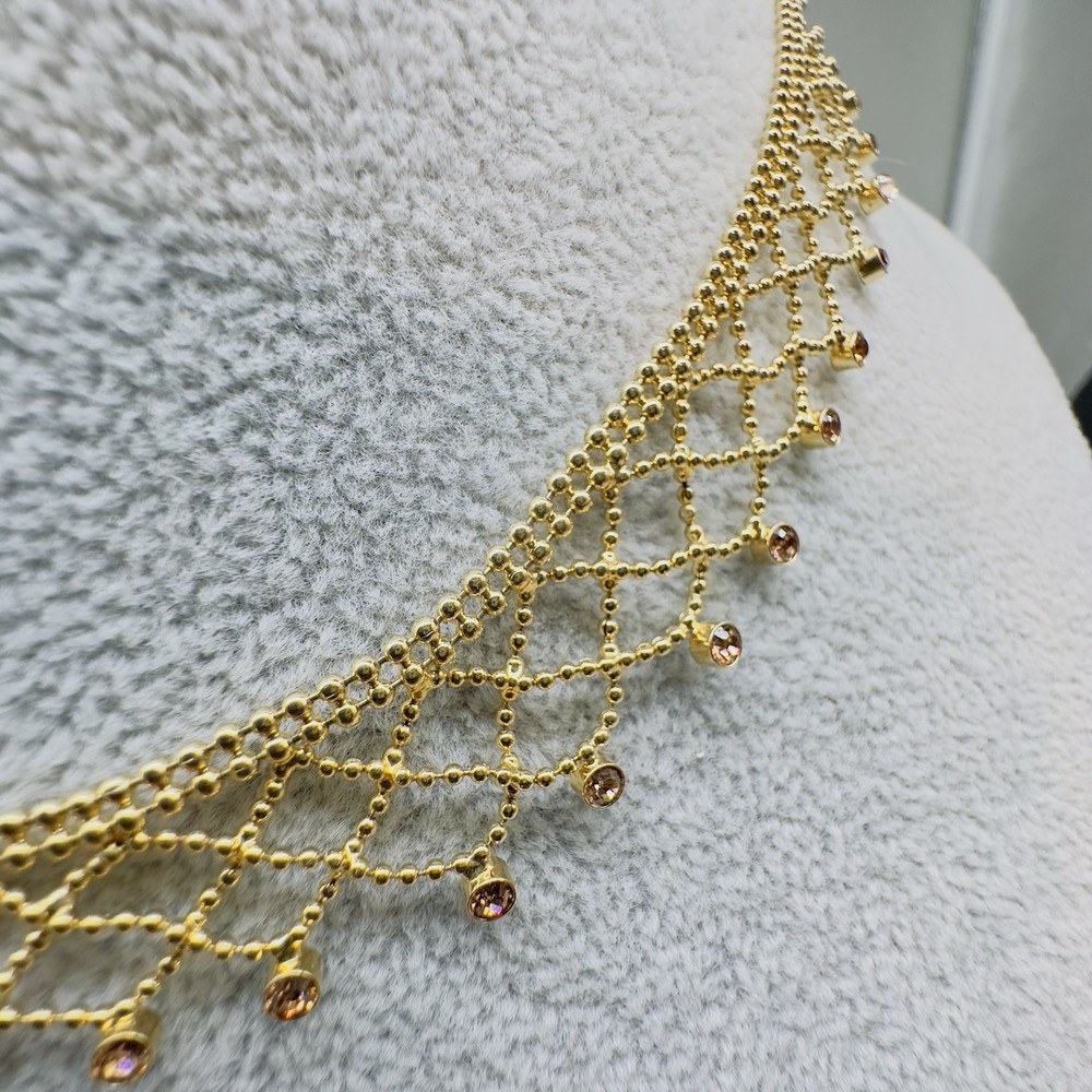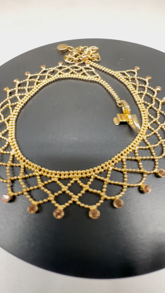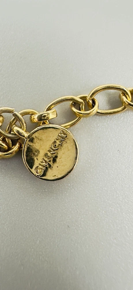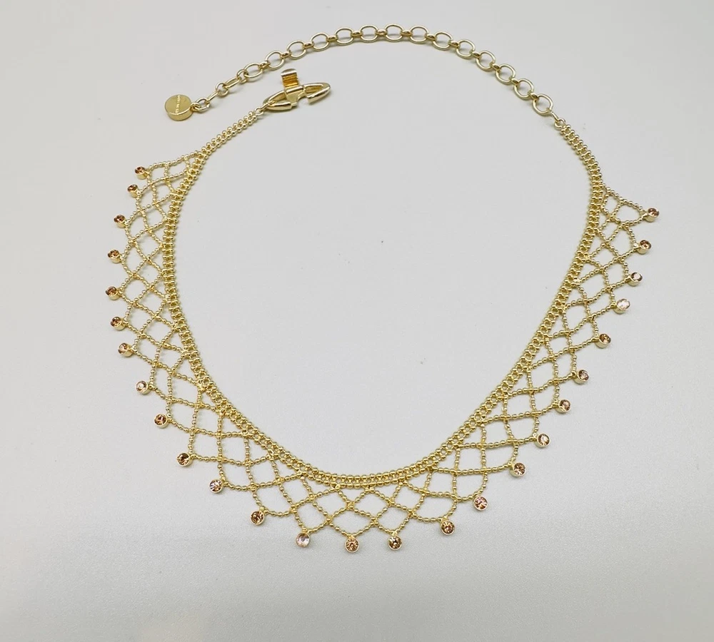 Main Stone Color:GoldChain Type:Ball/BeadType:NecklaceClosure:Fold Over ClaspNumber of Gemstones:26Necklace Length:17 inMain Stone:CrystalDepartment:WomenMain Stone Shape:RoundMaterial:LaceSigned:YesColor:GoldStyle:ChokerBrand:Givenchy