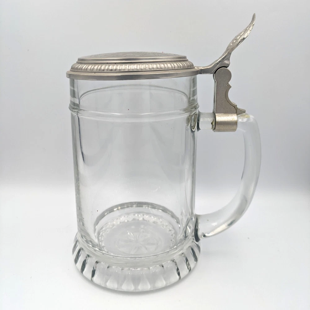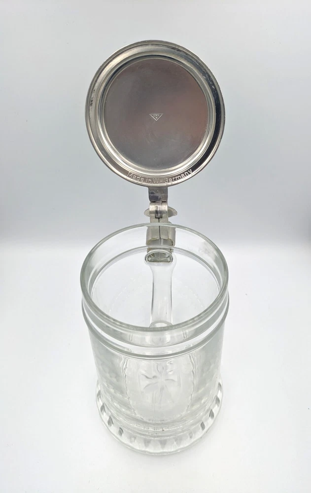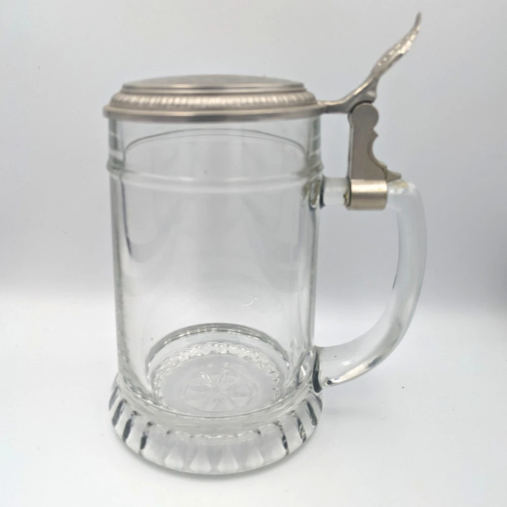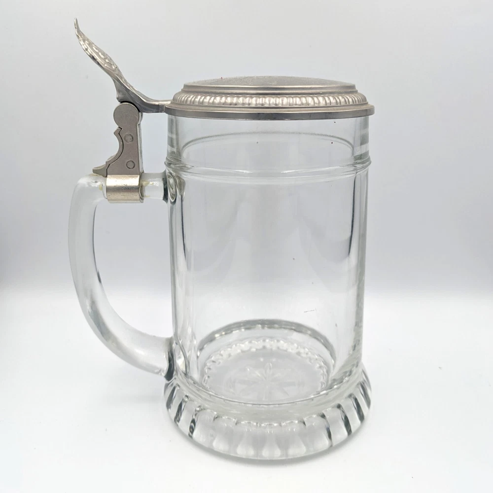 Vintage Glass Beer Stein with Pewter Lid Etched Design BMF West Germany This vintage glass beer stein with a pewter lid is a must-have for any collector. Made in Germany, the stein features an etched elk, stag, or deer design that is both intricate and eye-catching. The pewter lid adds an extra touch of elegance to the piece. Whether you're a beer enthusiast or just appreciate decorative pieces, this stein is a great addition to any home. The engraving, which reads "Jim," adds a personal touch to the already unique piece. Don't miss out on the opportunity to own this one-of-a-kind stein. Condition: This glass stein is in great vintage condition with no chips, cracks, or flea bites. The item is used and may exhibit slight signs of use/wear and very minimal scratching. HISTORY: On April 2, 1902 the two friends Hans Wagner and Willy Gundel founded the Bavarian Hardware Factory in Nuremberg, BMF for short. The firm produced "luxury and utility articles" and was one of the leading firms in the metal working sector for decades. The family firm was sold in 1991 and in 1998 the new owners also had to file for bankruptcy. To commemorate the work of the owners and managers of the company - Hans Wagner, Willy Gundel, Max Wagner und Dr. Norbert Streng -the BMF Museum was set up in three rooms of the former factory premises of the firm on the occasion of its 101 anniversary. **NEW USER SPECIAL OFFER & GUARANTEE** I will be offering REDUCED SHIPPING to US/CANADA / INT'L as I strive to earn the trust of buyers quickly, ship expertly and offer great deals. Please bid with confidence and you will not be disappointed. Experienced Glass / Ceramic Shipper.