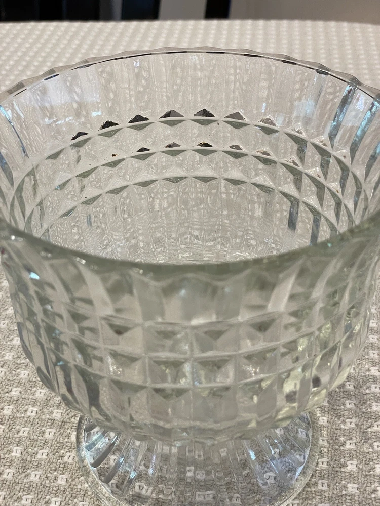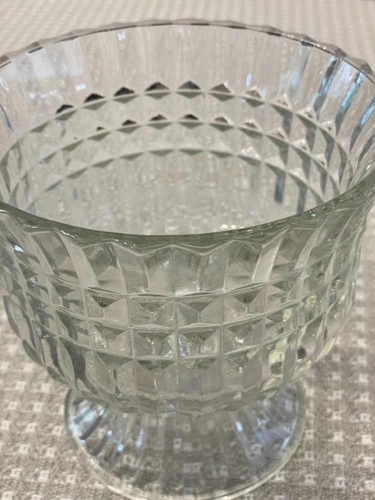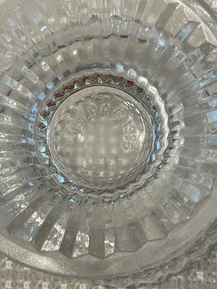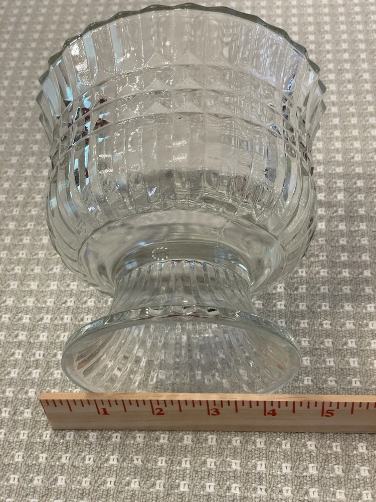 Vintage Clear Glass Ribbled Pedestal Candy/Trinket Bowl Dish FTDA 1986 Holiday "Excellent Pre-owned Condition" "Absolutely Beautiful" "All items from Smoke Free Home" "Please view pictures provided" "I Ship FAST!" "Thank you for looking"
