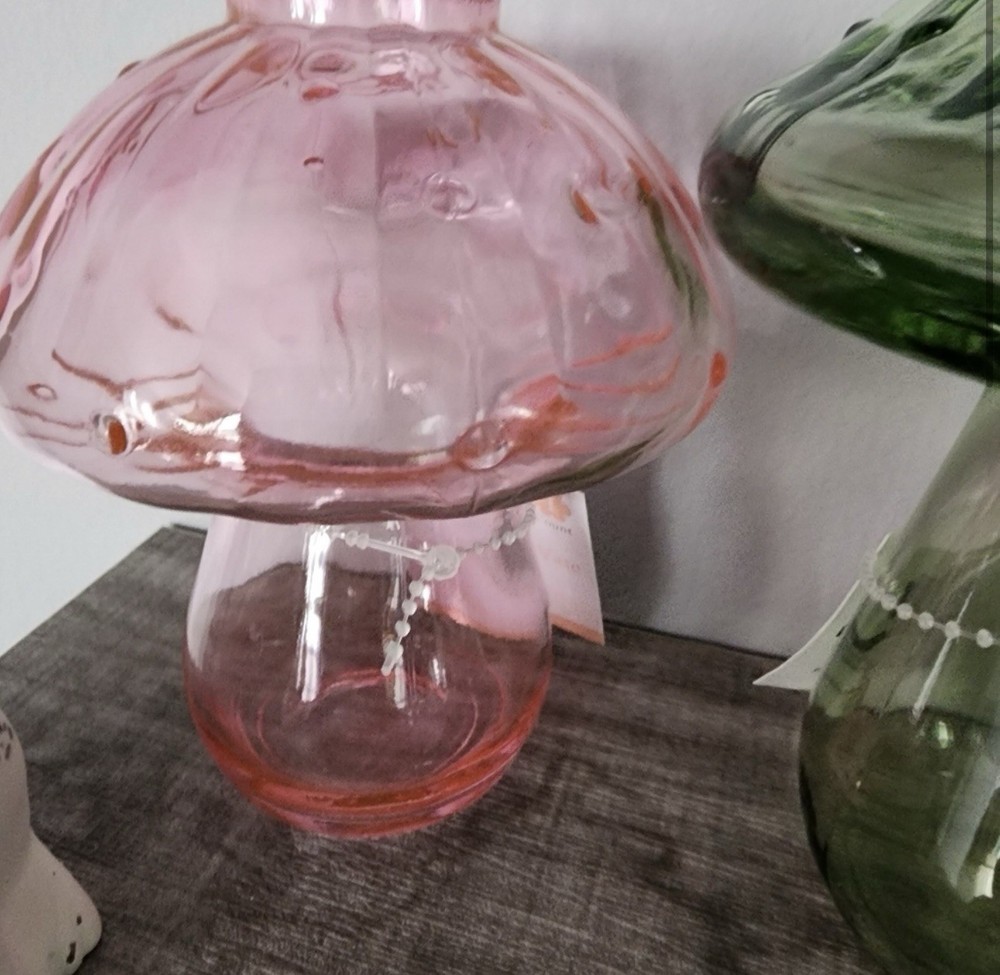 The Target Bullseye Spring 2024 Glass Mushroom Vase Planter set includes three vases in sizes of 5" and 6". Made of glass and featuring a unique mushroom shape, these multicolor vases add a whimsical touch to any home decor. Perfect for displaying flowers or as standalone decorative pieces, these vases offer a fun and creative way to enhance your living space. Set of 3 as pictured, one in pink, one in purple and one in green. Brand New