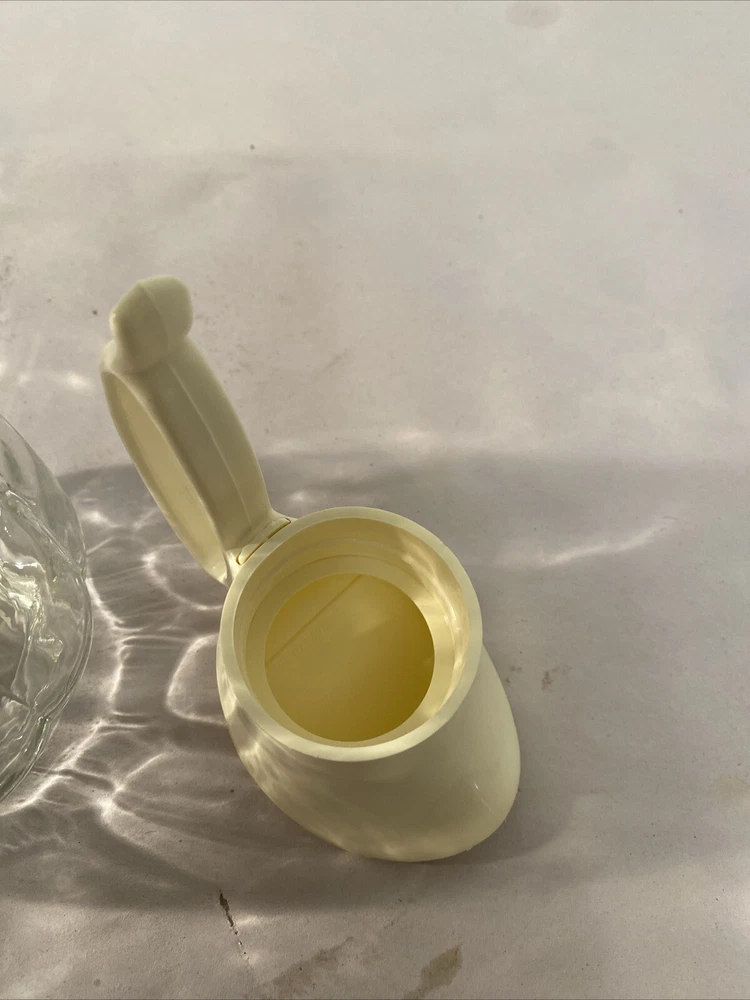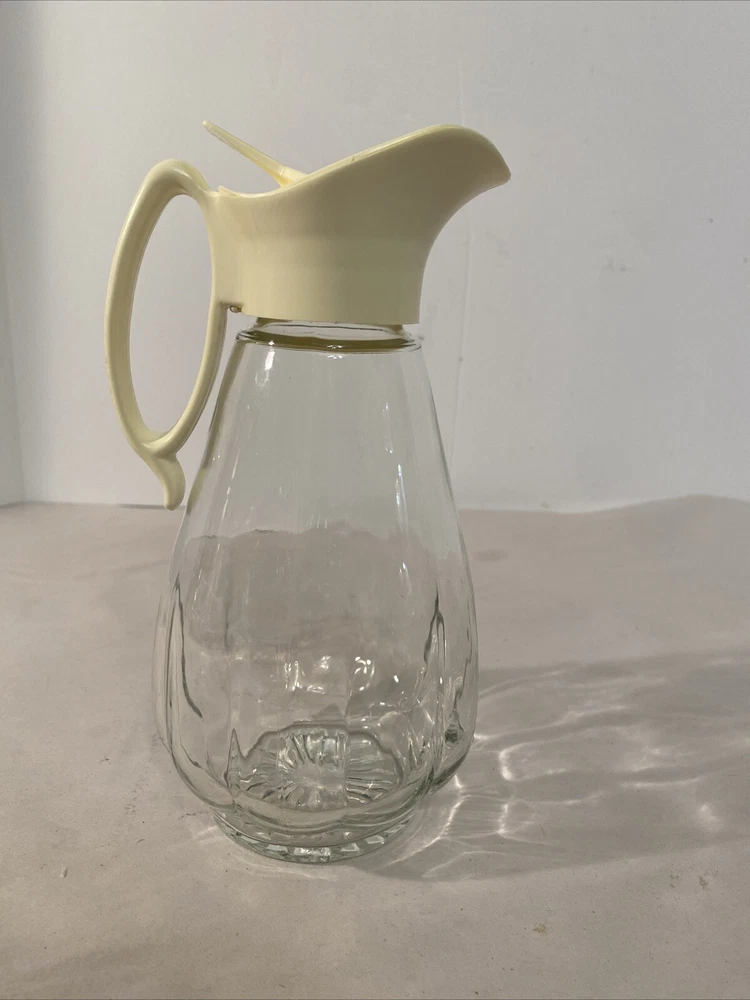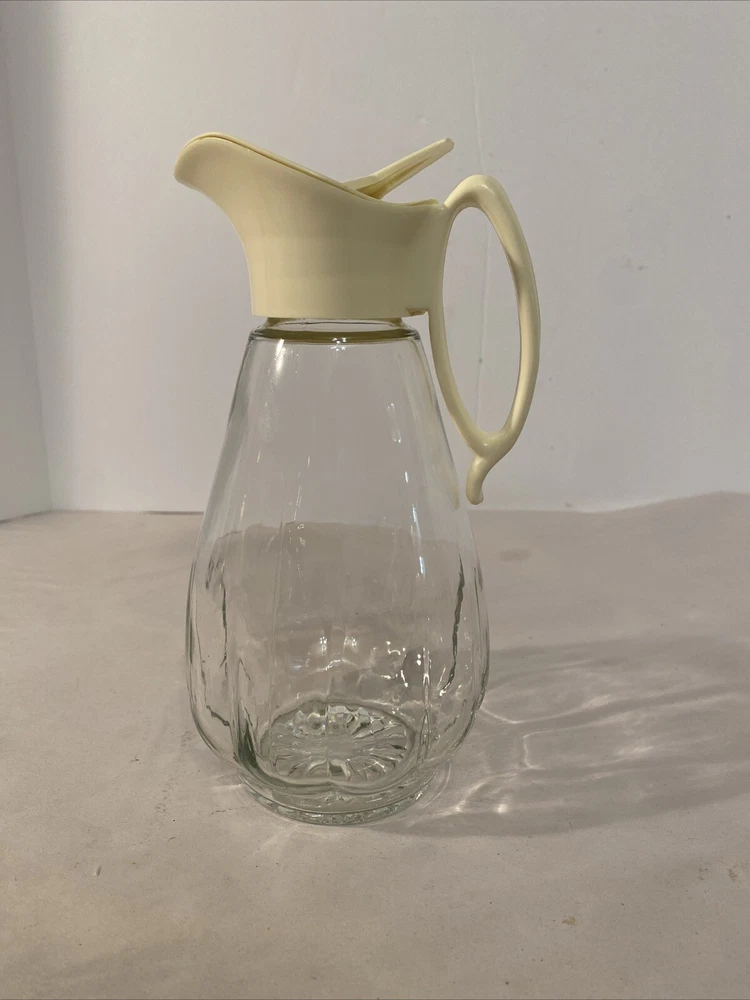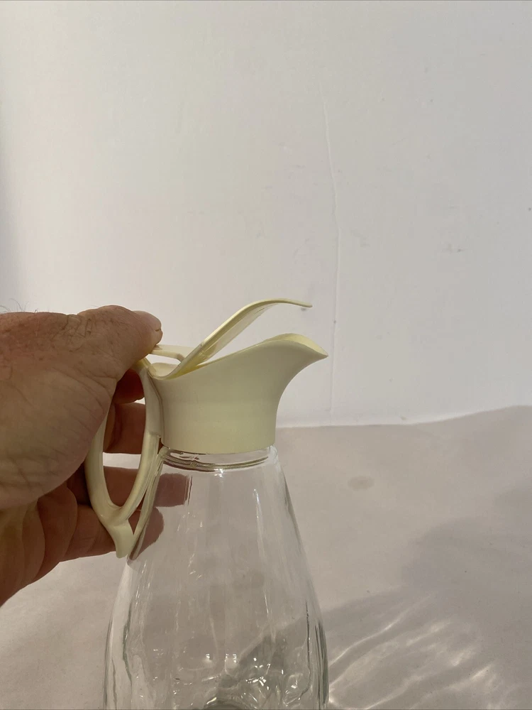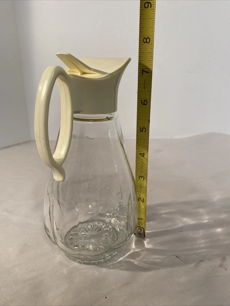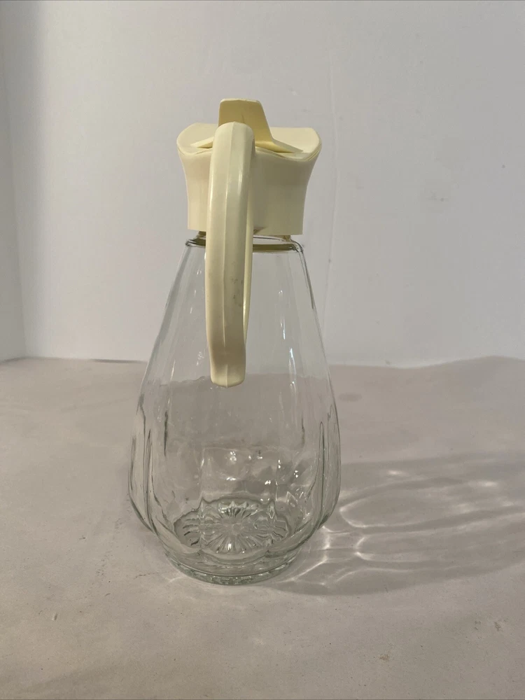 Vintage Glass Syrup Dispenser Bottle w/ Pour Lid. Condition is Used. Shipped with USPS Ground Advantage.
