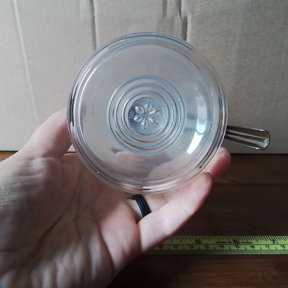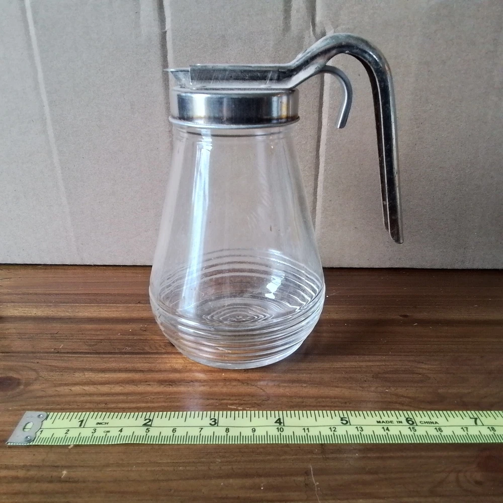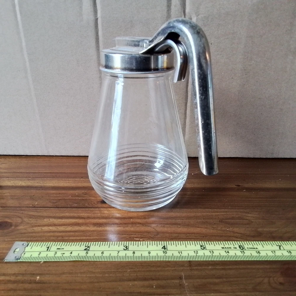Vintage Glass Syrup Dispenser w/Metal Top. Condition is Used. Shipped with Economy Shipping.