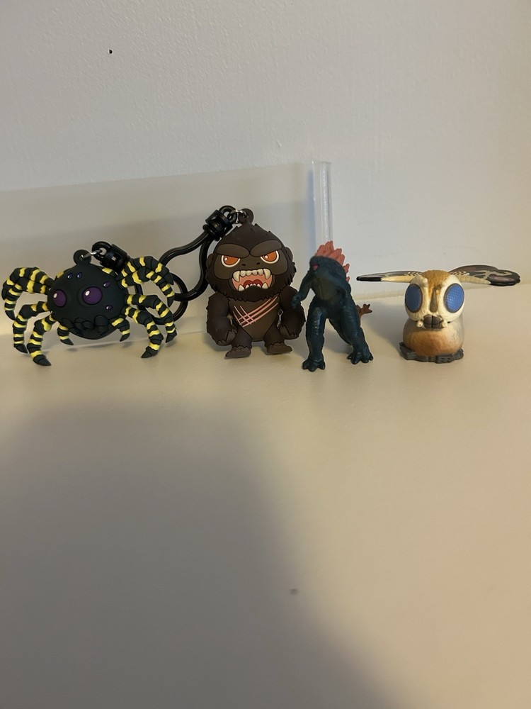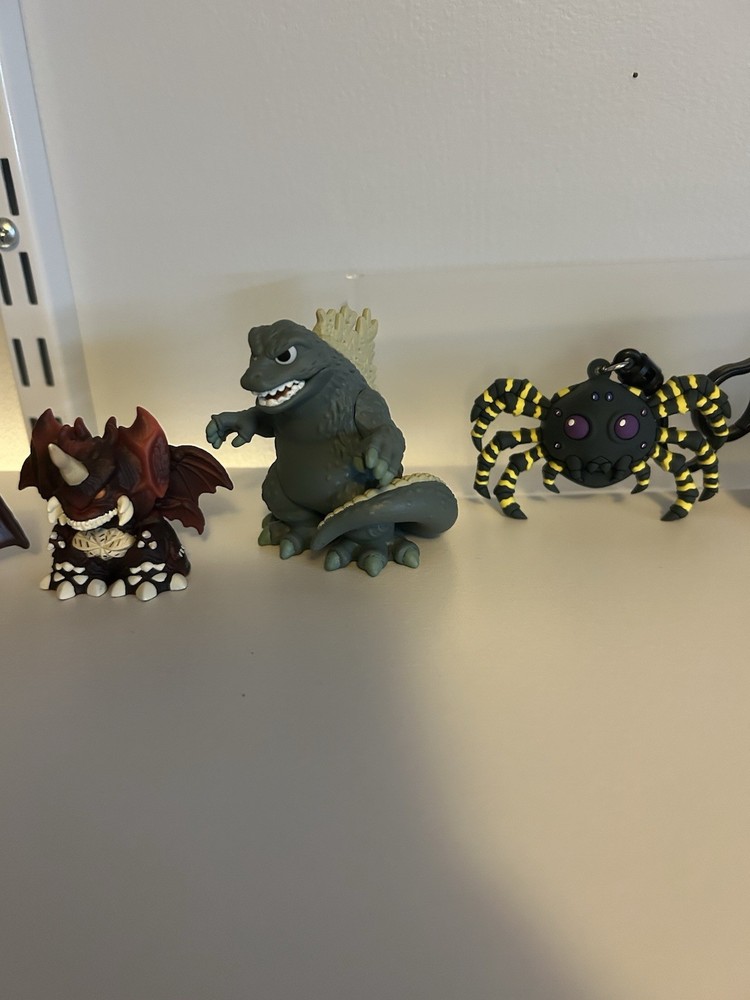 Includes Metalfigs Godzilla evolved Metalfigs Shimo Rodan finger puppet Destoroyah finger puppet Funko Godzilla mystery mini Kumonga keychain Kong keychain Playmates Godzilla mini Mothra finger puppet